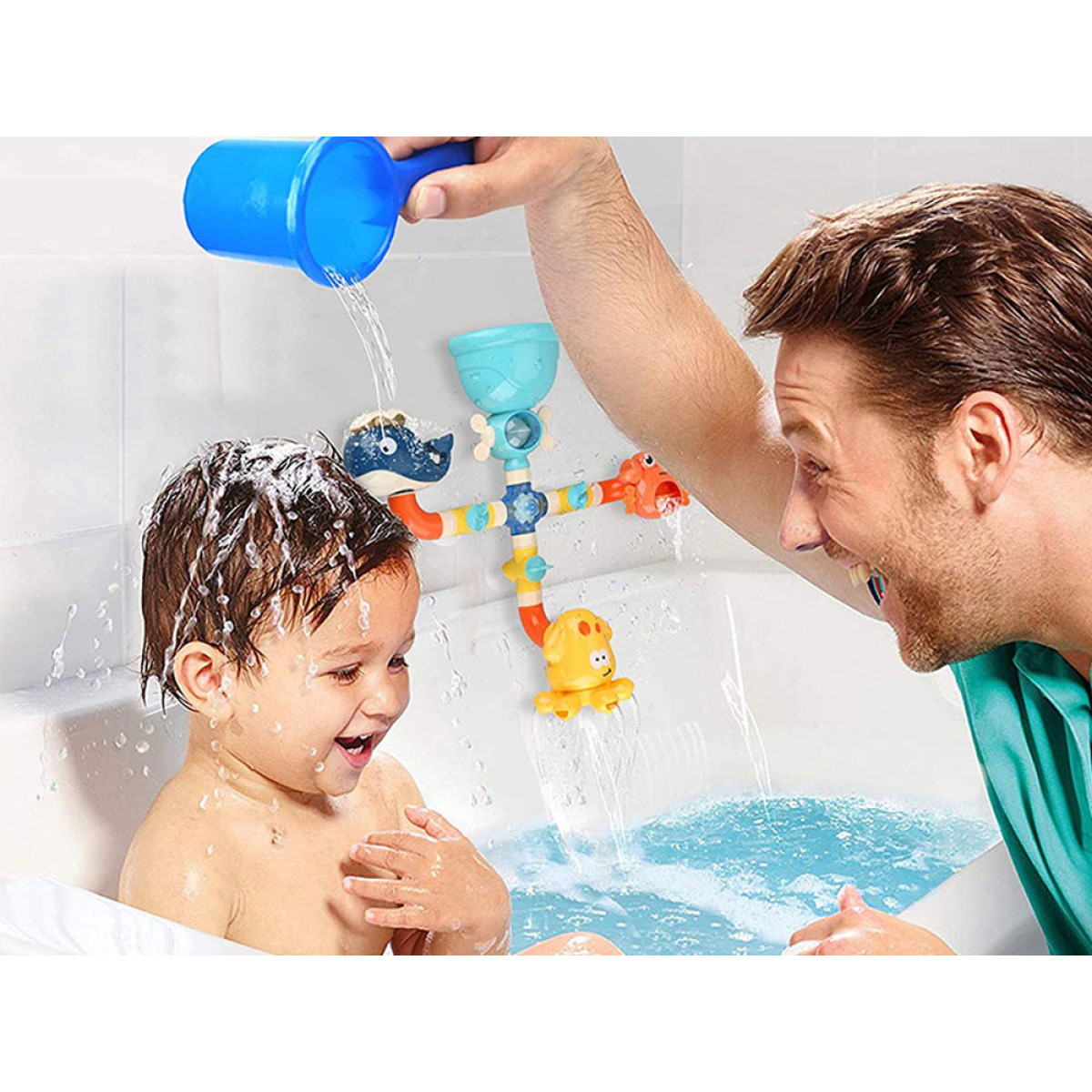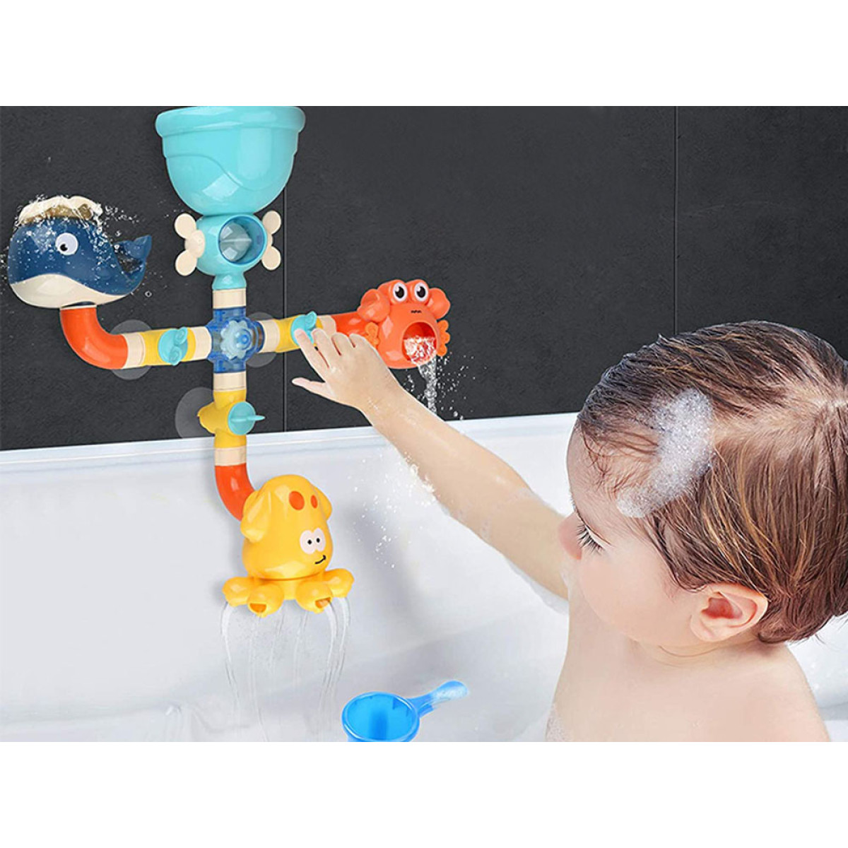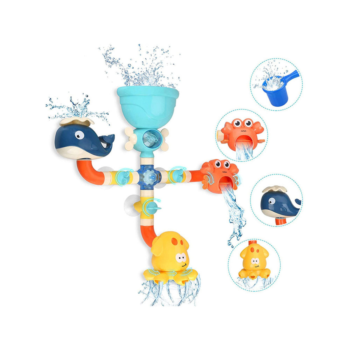 Įpilkite vandens į žaislo viršų, ir stebėkite, kaip jis teka per vidų, išsiverždamas fontanu arba kriokliu. Įmontuoti piltuvėliai palengvina vandens įpylimą, o saugios medžiagos užtikrina patikimą naudojimą. Spalvingas dizainas ir jūrų gyvūnų formos - aštuonkojis, banginis ir krabas - suteikia žaislui jūros atmosferą. Žaislas lengvai surenkamas ir išardomas, leidžiantis vaikams kurti įvairias kombinacijas. Galite keisti gyvūnų išdėstymą, atjungti vamzdelius arba uždaryti vandens srautą su geltonais vožtuvėliais.