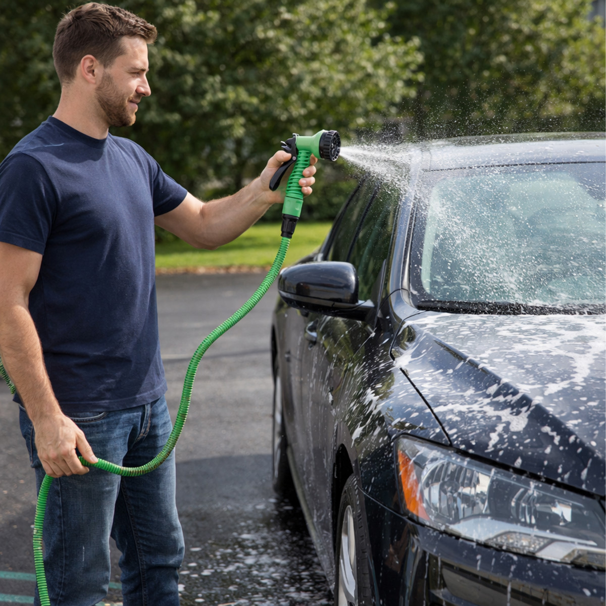 - Universalumas: su universaliomis jungtimis ir pistoletu, tinka įvairiems darbams sode.