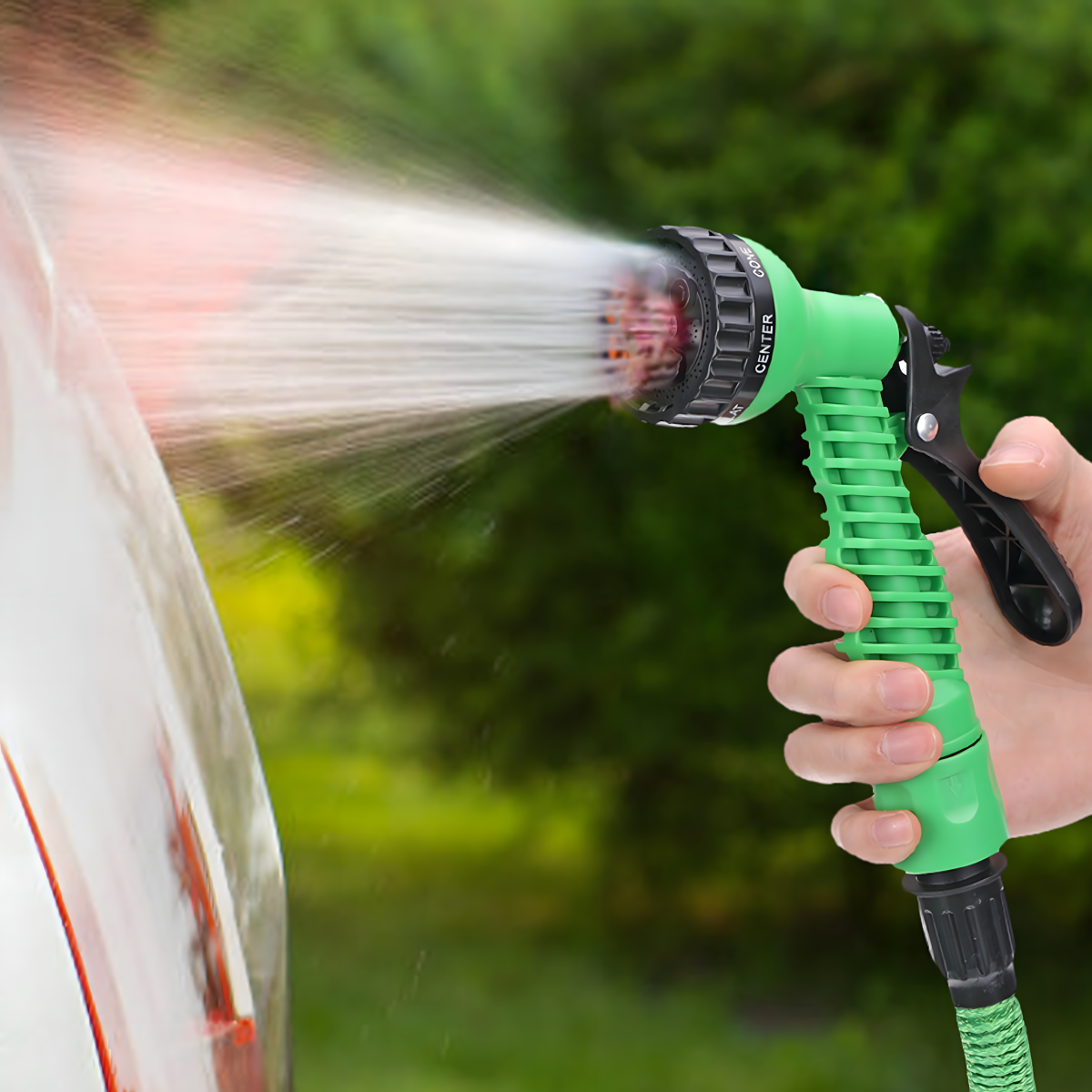 - Purkštuvas, kuris leidžia lengvai reguliuoti vandens srautą