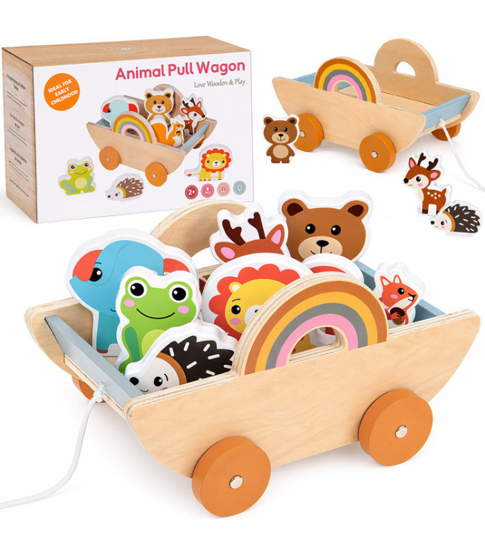 tai puikus pasirinkimas ieškantiems medinio edukacinio žaislo vaikui. medinis traukiamas vežimėlis su gyvūnais tinka kasdieniam žaidimui namuose ir gali tapti puikia dovana.