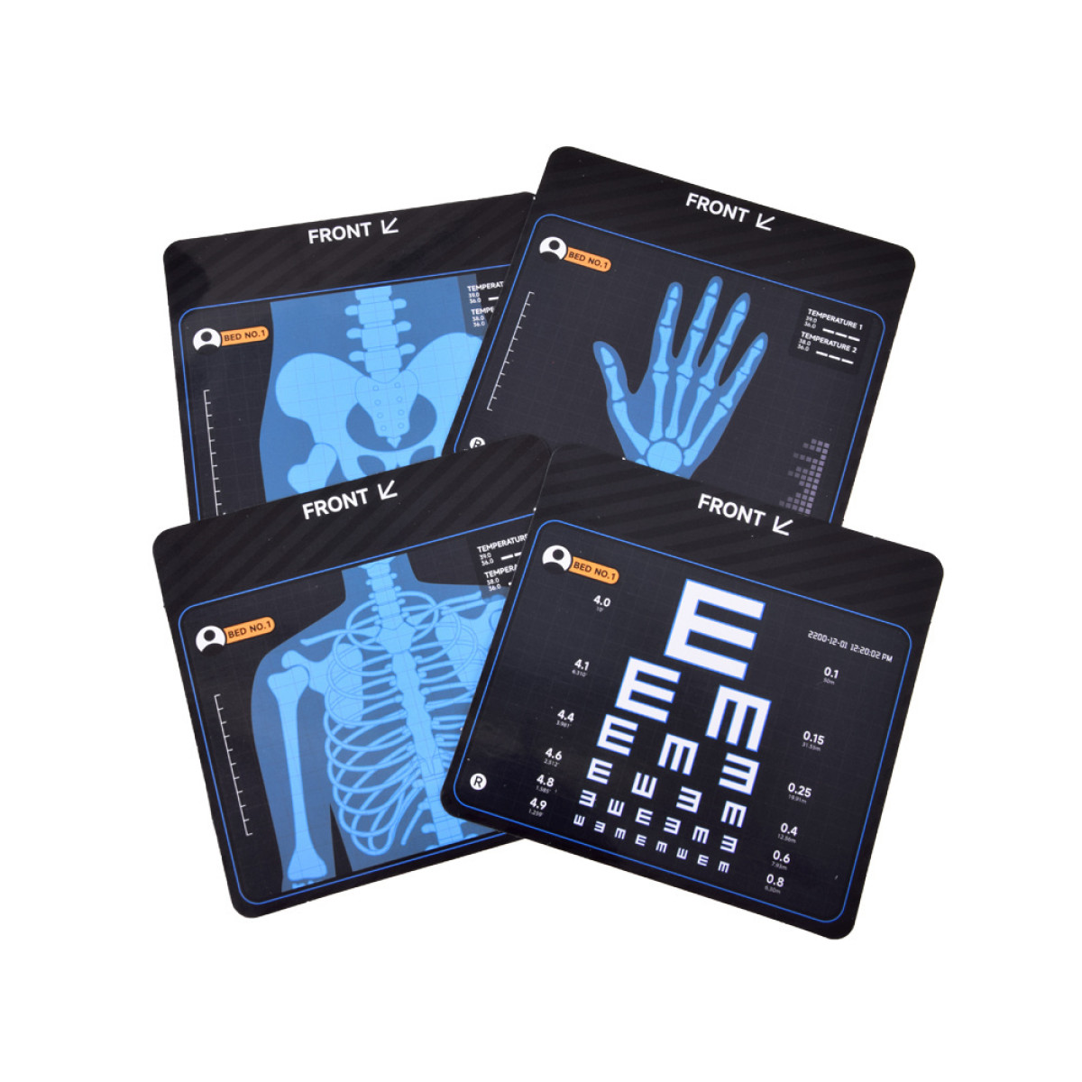 - Plastikinis monitorius su įdėklų tarpu, kuriame galima įdėti korteles su akių tyrimo lentelėmis ar rentgeno vaizdais. Po baterijų įdėjimo ir jungiklio įjungimo, skleidžia paciento gyvybinių parametrų stebėjimo garsus.