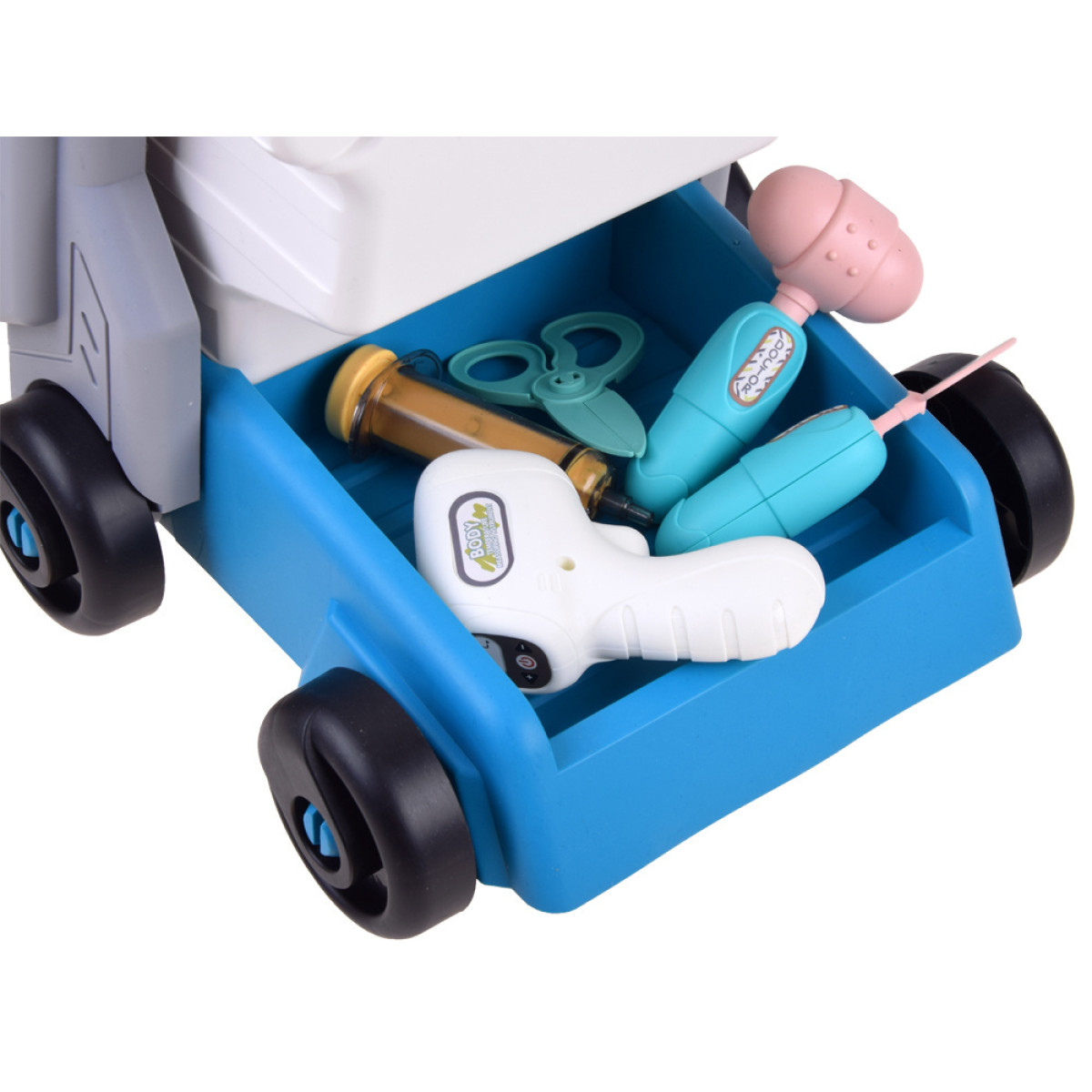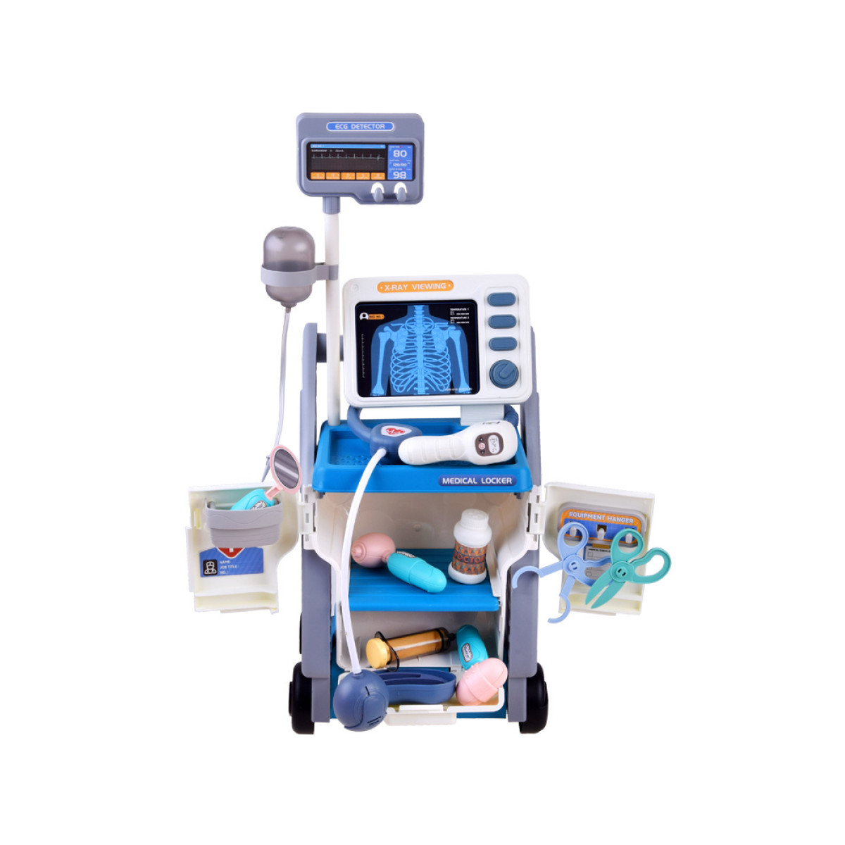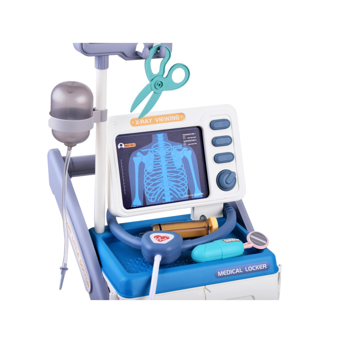 Šis žaislinis medicinos vežimėlis su priedais yra puikus pasirinkimas vaikams, mėgstantiems žaisti gydytojus. Vežimėlis yra patogus ir turi visus reikalingus priedus, kad vaikai galėtų rūpintis savo lėlėmis, meškiukais ar net šeimos nariais. Mažasis medikas gali matuoti temperatūrą, daryti injekcijas, tyrinėti širdį ir akis, prijungti lašelinę, atlikti rentgeno tyrimus ir dar daugiau.