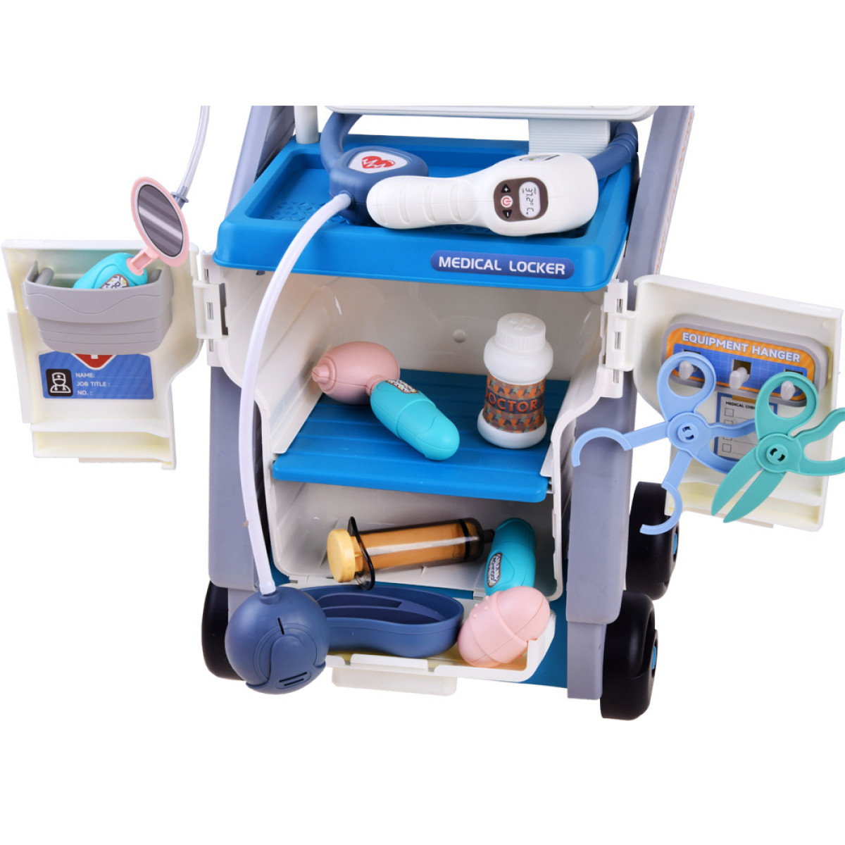 Šis medicinos vežimėlis su spalvingais priedais leis vaikams įsijausti į gydytojo vaidmenį ir pagelbės įveikti baimes prieš tikrą gydytoją. Mokymas per žaidimą suteikia puikius rezultatus ateityje.