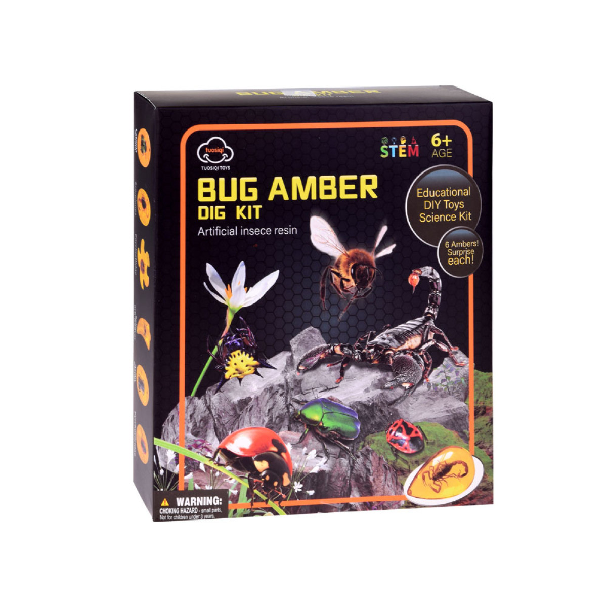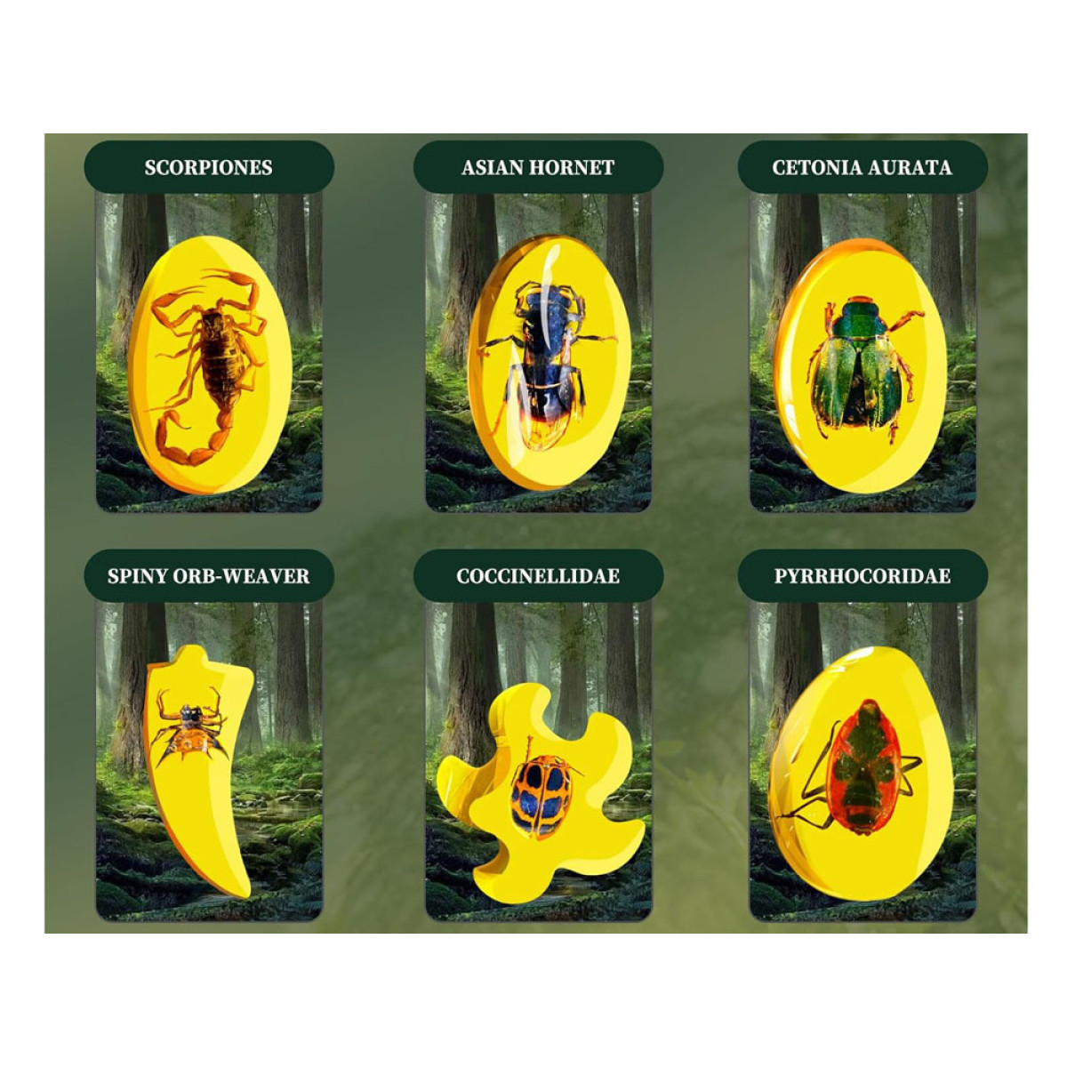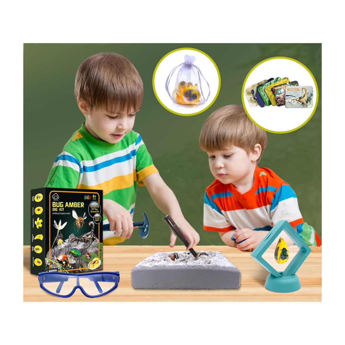 Gipso liejinyje paslėpti šeši gintarai su įstrigusiomis vabzdžiais. Naudojantis pridedamais įrankiais - plaktuku ir kaltu - reikia juos iškasti. Tai lėtas, bet labai malonus darbas. Surastus gintarus galima dėti į dekoratyvinį maišelį arba stendą, kad jie būtų įdomi kiekvieno vaiko kambario puošmena.Gipso liejinio matmenys: