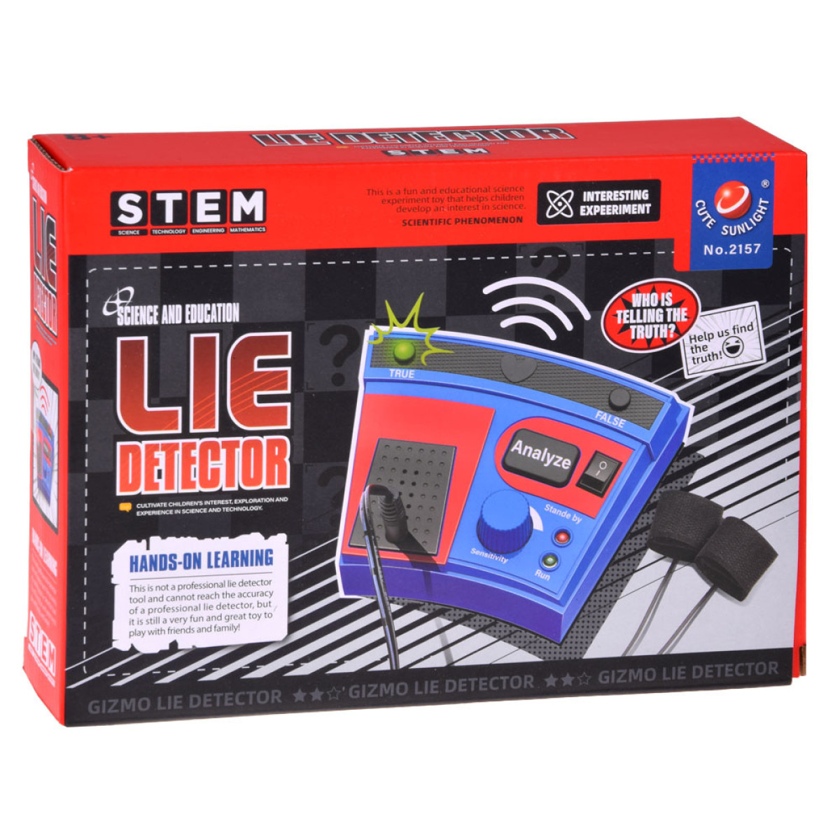 Šis edukacinis žaislas leidžia jums įsikūnyti į tikro detektyvo vaidmenį! Prietaisas imituoja profesionalaus poligrafo veikimą, analizuodamas fiziologines vartotojo reakcijas atsakant į klausimus. Nors tai nėra profesionalus įrenginys, jis suteikia daug pramogų ir yra puikus laisvalaikio užsiėmimas visai šeimai ir draugams.