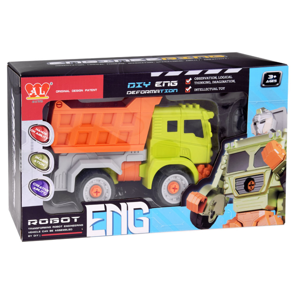 Sunkvežimis-Robotas 2in1 yra nuostabi žaislas, kuris vienu metu yra ir sunkvežimis, ir robotas. Iš pirmo žvilgsnio tai atrodo kaip paprastas automobilis, tačiau šiek tiek jį perdirbus, jis virsta robotu! Tereikia atsukti keletą varžtų, nuimti nereikalingas dalis ir mechaninis robotas bus paruoštas žaidimui. Robotas turi judančias rankas ir kojas, ir gali stovėti savarankiškai.