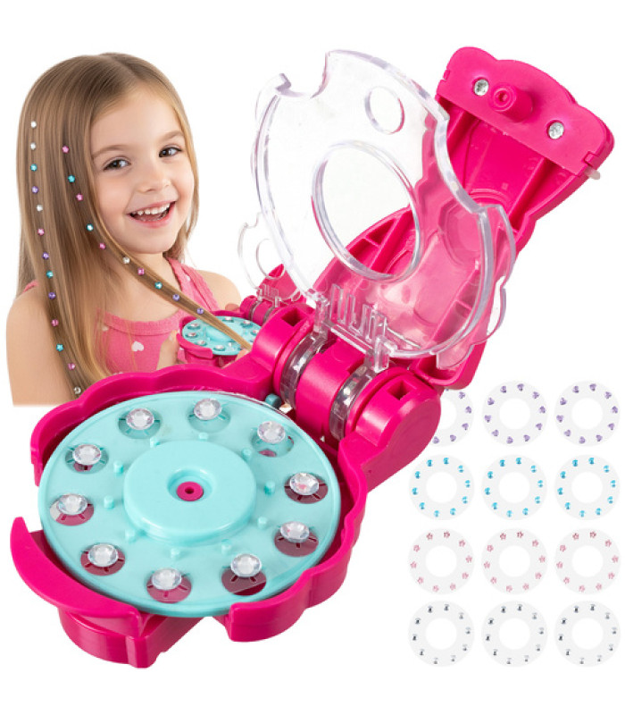 Sukurkite savo stilių per kelias sekundes! Dekoravimo mašina yra kūrybingas žaislas, leidžiantis vaikams (ir kitiems!) suteikti spindesio savo šukuosenoms, drabužiams ir aksesuarams.