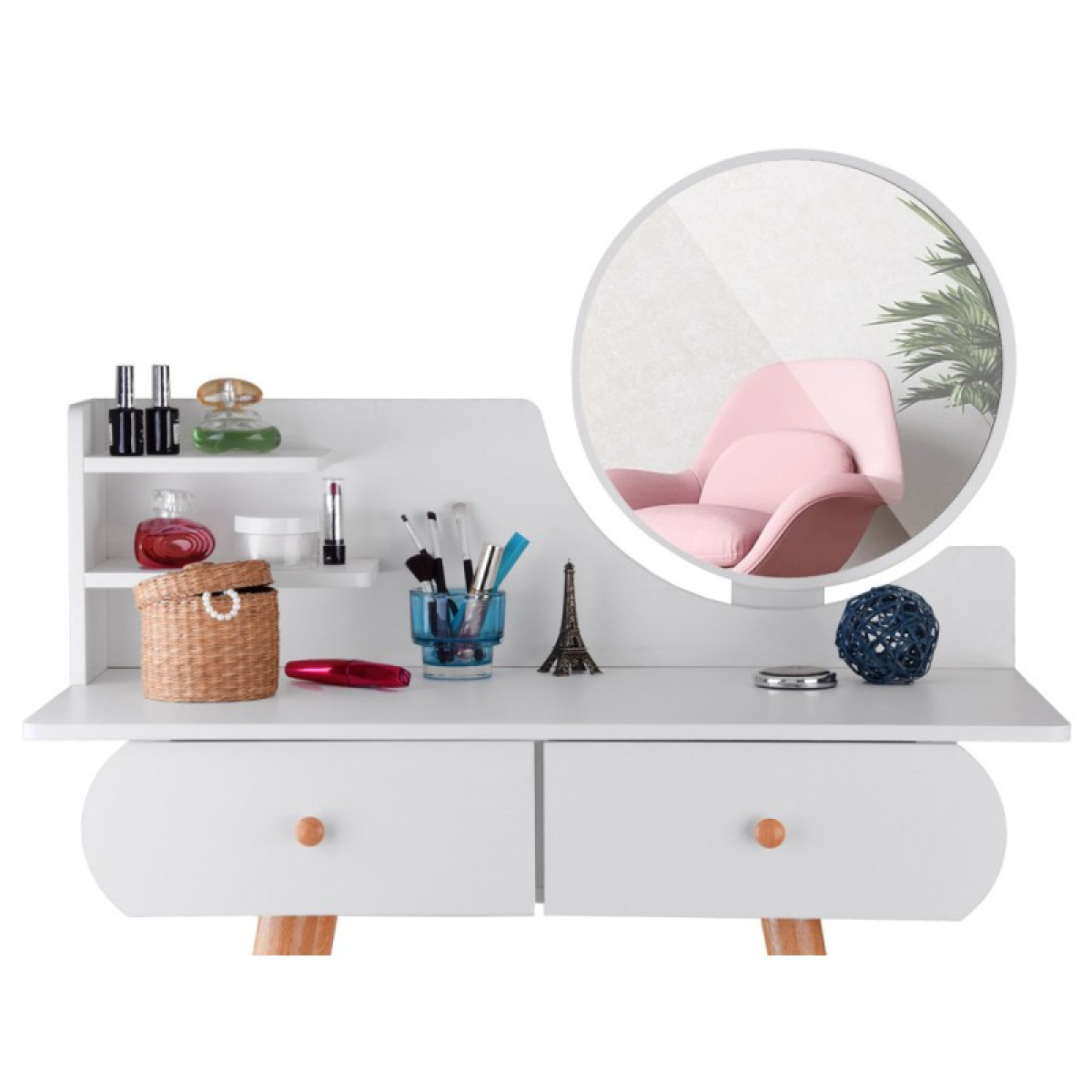 Funkcinis baltas tualetinis staliukas su veidrodžiu + taburetė + stalčiai ZA4820