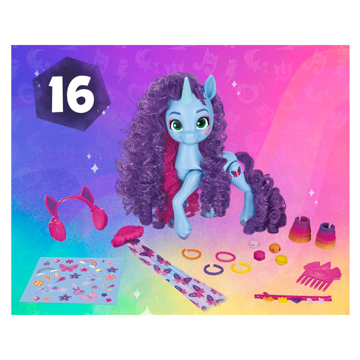 Pasinerkite į magišką Equestrios pasaulį ir kurkite išskirtinius stilius su vienaragiu Misty Brightdawn, žinomu iš serijos „My Little Pony: Make Your Mark“. Rinkinys sukurtas vaikams, kurie mėgsta šukuoti, persirenginėti ir personalizuoti savo mėgstamus herojus.