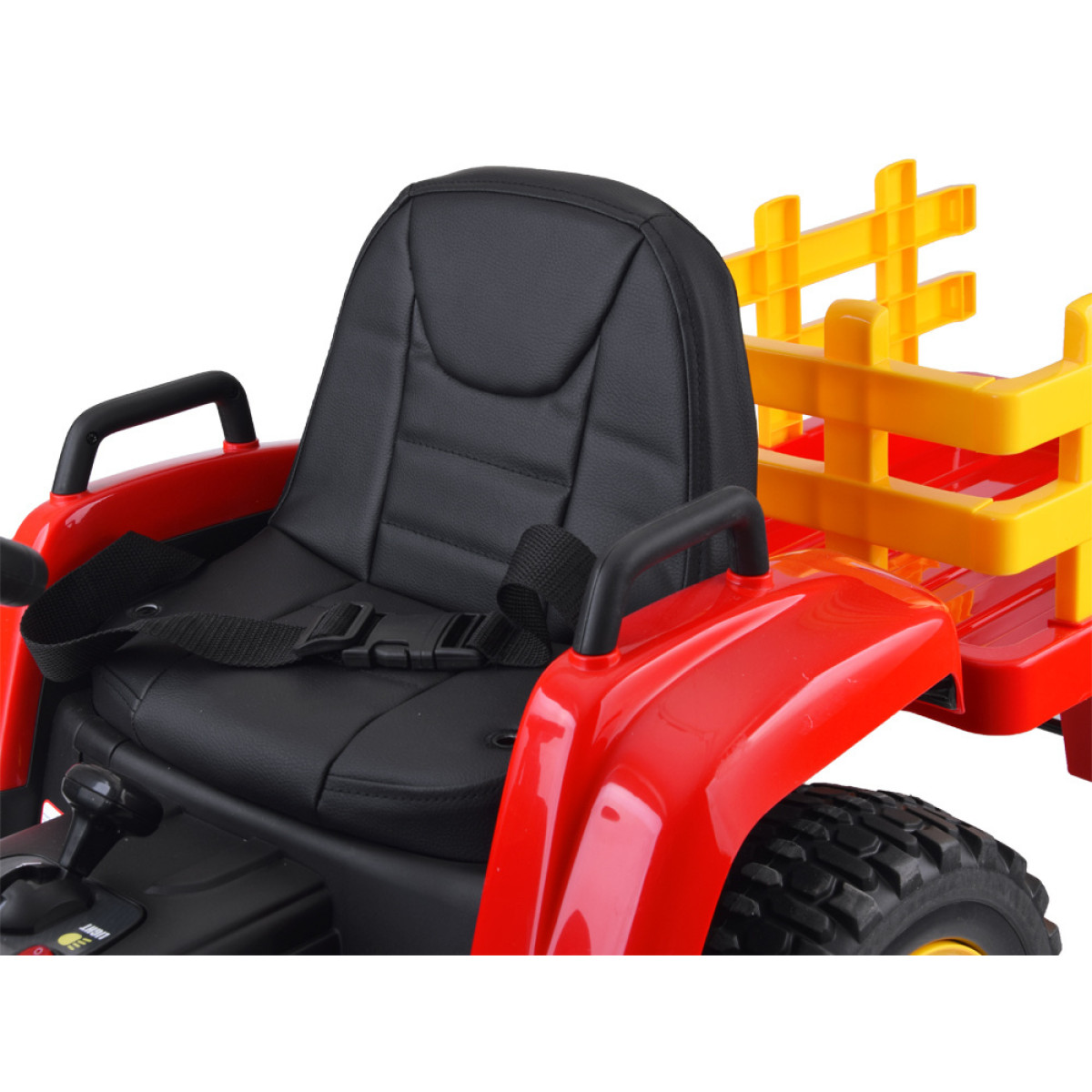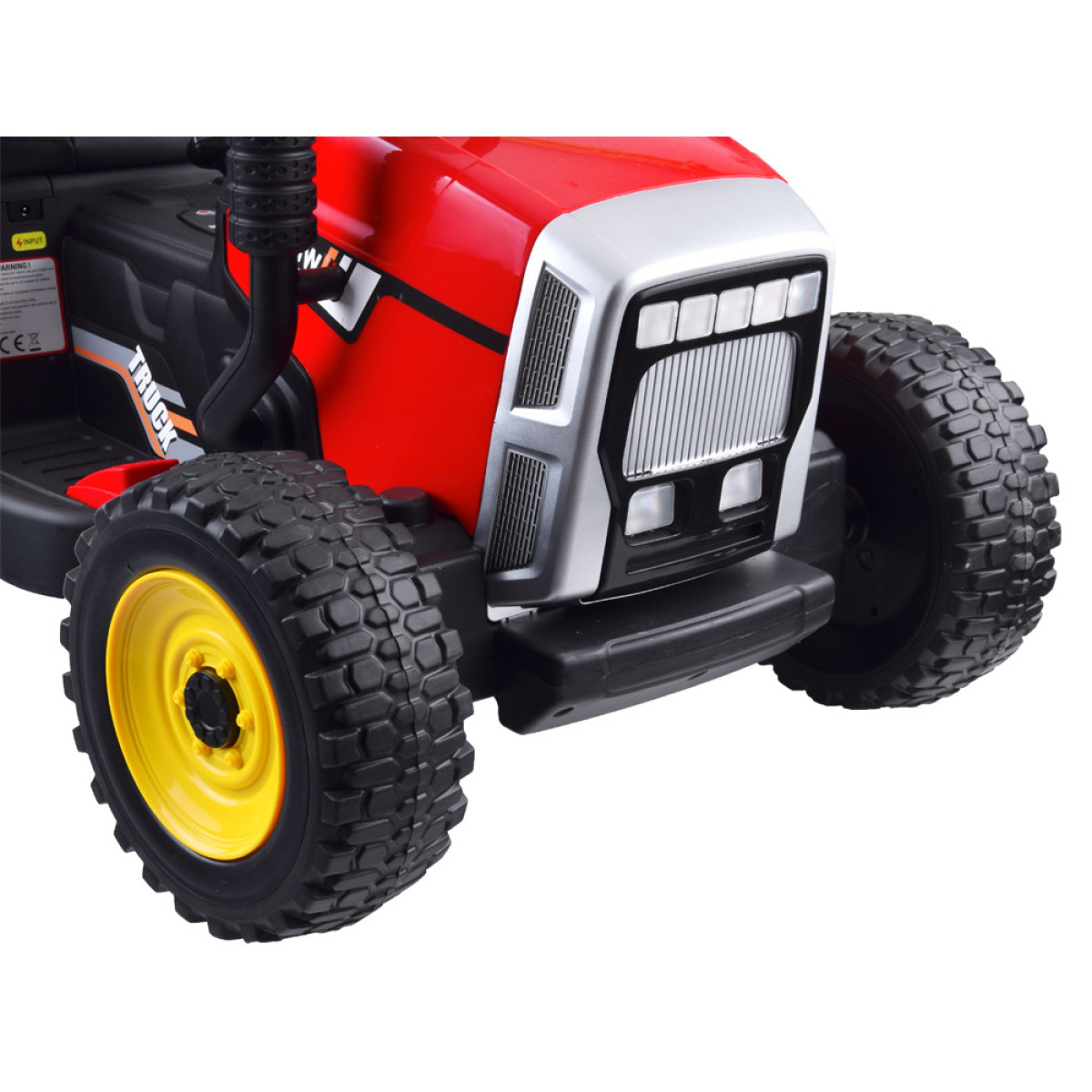 Šis traktorius su priekaba, kuris patiks kiekvienam mažajam vairuotojui, užtikrins daugybę linksmų akimirkų. Traktorius su garso ir šviesos efektais, muzikiniu pulteliu puikiai tiks kiekviename ūkyje. Jame yra patogus sėdynės iš ekoodos, pavarų svirtis greičiui ir važiavimo krypčiai keisti, šviesų jungiklis. Lėtas startas užtikrina patogų mašinos pajudėjimą. Du galingi varikliai ir akumuliatoriai leis pasiekti bet kokį tikslą.