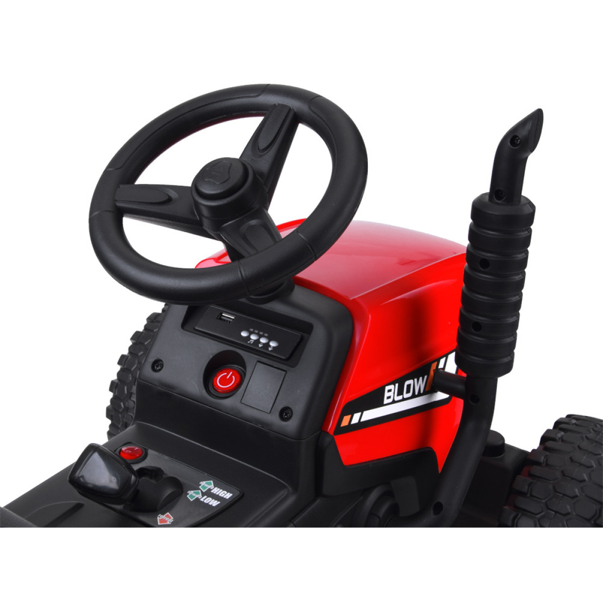 Traktoriaus ratai pagaminti iš EVA medžiagos, kuri sumažina vibraciją ir triukšmą važiuojant nelygia danga. Dėl 2 variklių, traktorius lengvai įveikia kalvas, nelygumus ar žolę. Traktorius turi stabdį, kuris veikia atleidus akceleratoriaus pedalą. Greitį galima reguliuoti 2,4GHz pulteliu, suteikiant tėvams visišką kontrolę. Važiavimas pirmyn ir atgal kontroliuojamas jungikliu. Šis įrenginys būtinas kiekviename ūkyje. Geriausios kokybės, unikalūs, patikimi ir saugūs vaikų automobiliai tik iš JOKOMISIADA garažo. Žaislas skirtas vaikams nuo 3 iki 6 metų.