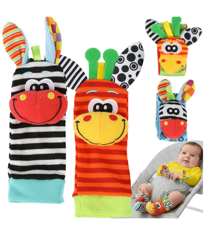 Kruzzel rinkinys sujungia minkštus audinius, kontrastingas spalvas ir švelnų barškučių garsą, kad padėtų kūdikiams vystytis nuo pirmųjų gyvenimo savaičių. Apyrankės ant riešų ir kojinytės skatina judesius, padeda lavinti koordinaciją ir motorikos įgūdžius. Pliušiniai gyvūnėliai, pritvirtinti prie kiekvieno elemento, švelniai barška judant, padedant kūdikiui suprasti judesio ir garso ryšį. Rinkinys yra lengvas, minkštas, spalvingas ir saugus.