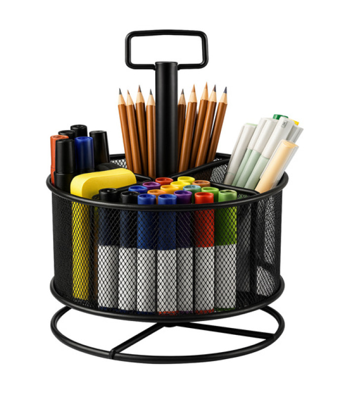 – gerai apgalvota organizacija – viskas po ranka, dėka 4 aiškiai atskirtų skyrių, galite lengvai rūšiuoti rašiklius, pieštukus, žirkles, liniuotes ir kitus biuro reikmenis , integruota rankena leidžia greitai pernešti – pvz., nuo stalo iki konferencijų stalo