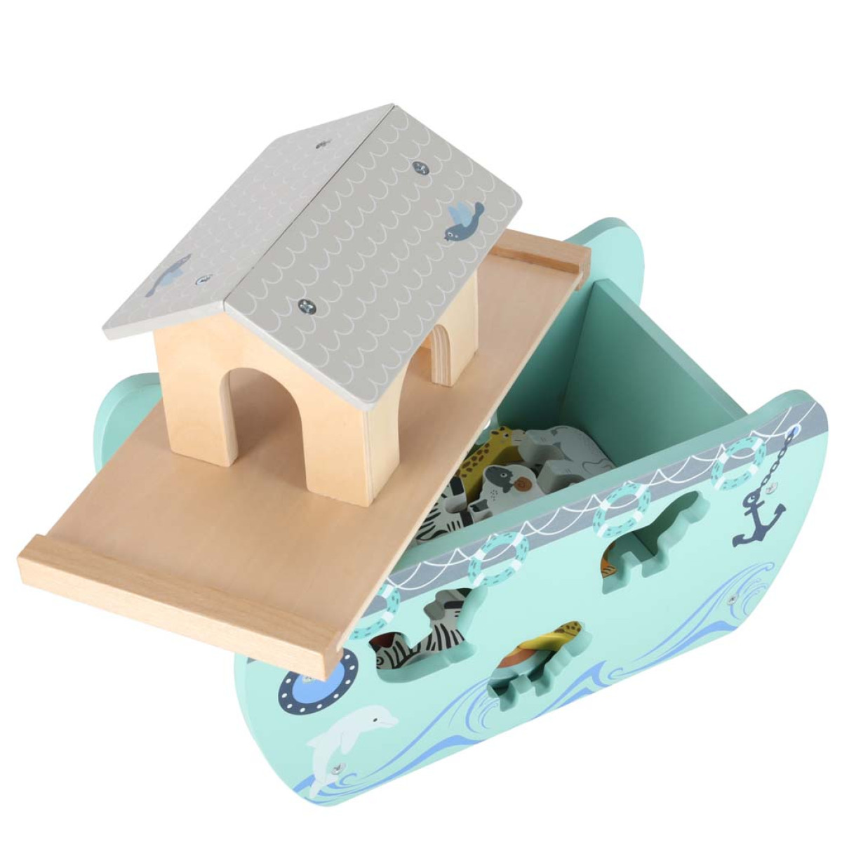 Susipažinkite su unikaliu mediniu formų rūšiuokliu, kuris sužavės vaikus ir tėvus! Medinė Arka Nojaus yra ne tik klasikinis edukacinis žaislas, bet ir tikra kelionė į vaizduotės pasaulį. Šis gražiai pagamintas medinis rūšiuoklis formos laivo pavidalu yra edukacinis žaislas, kuris lavina vaiko įgūdžius ir tuo pačiu leidžia atrasti nuostabią Arka Nojaus istoriją.