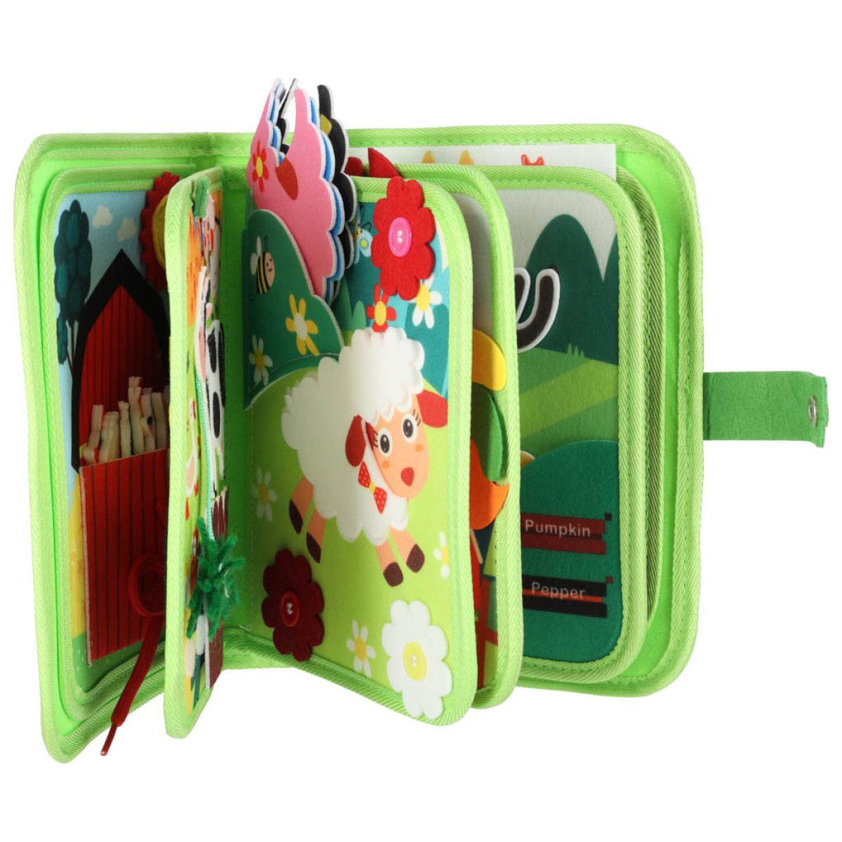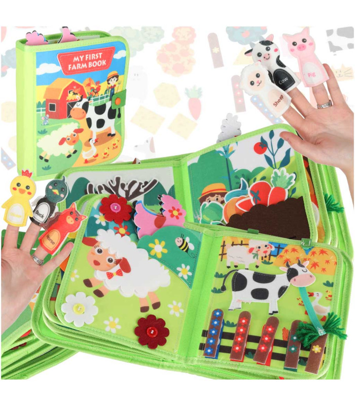 Leiskite mokymuisi tapti malonumu! Manipuliacinė knygelė su filco judančiais elementais nukelia mažylį į įdomų fermos pasaulį, kur judantys elementai padeda lavinti rankų koordinaciją, tikslumą ir smulkiosios motorikos gebėjimus.