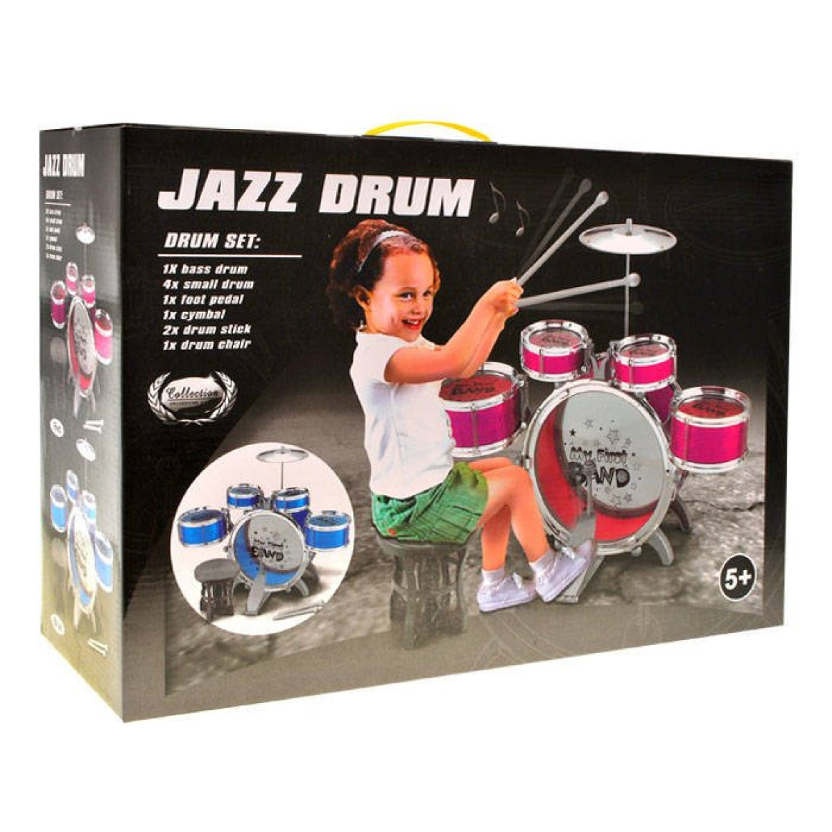 šis vaikiškas būgnų komplektas pagamintas iš plastiko ir suteiks daug džiaugsmo jaunajam muzikantui. rinkinys supakuotas kartoninėje pakuotėje, todėl tinka ir kaip dovana.