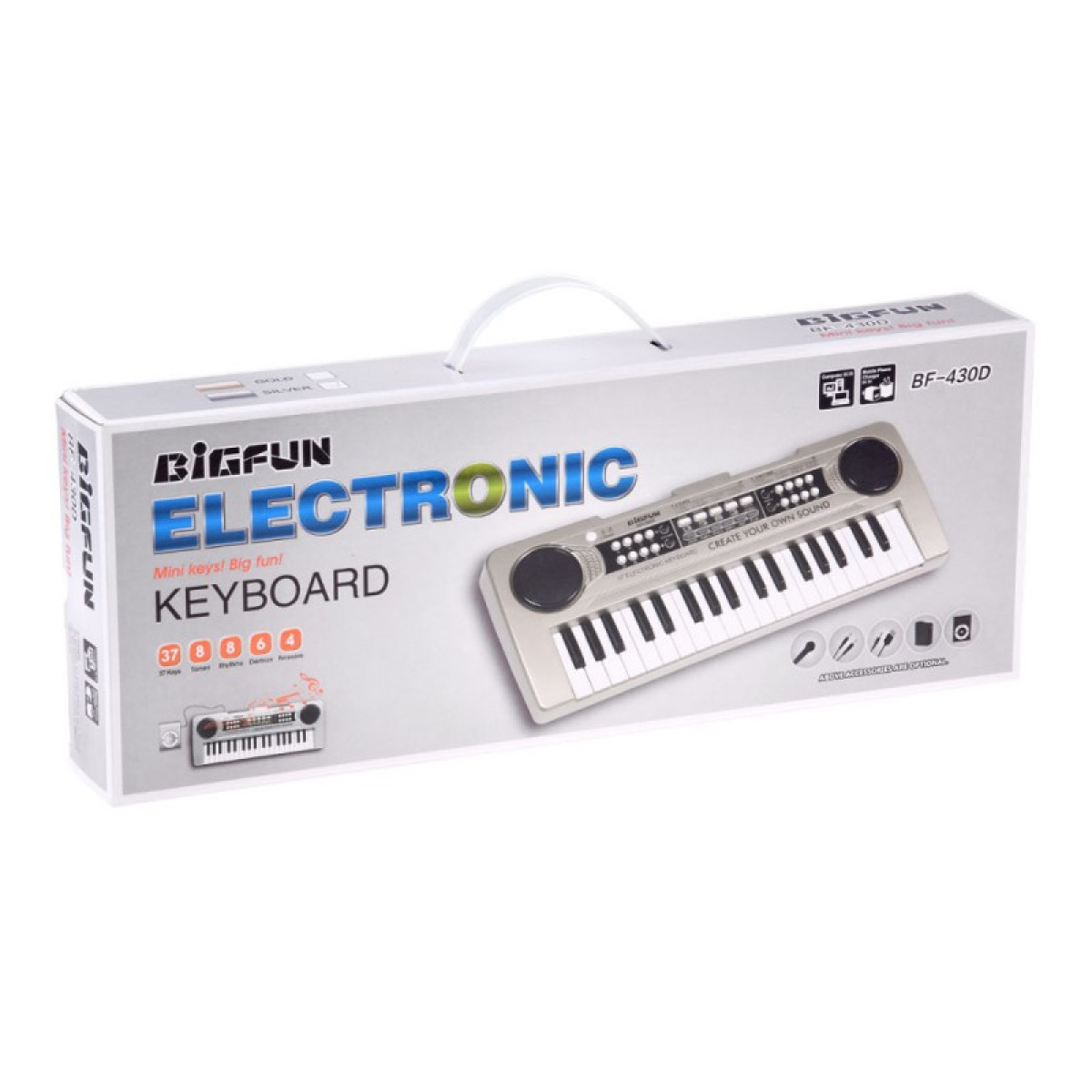 Mini vargonų klaviatūra, 37 klavišai + mikrofonas, sidabrinė, IN0183