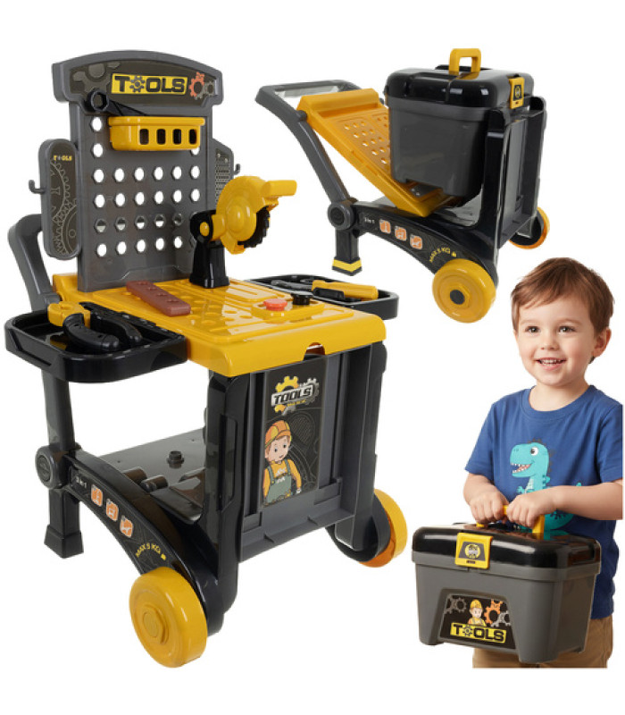 Šis 59 dalių žaislų rinkinys yra puikus pasirinkimas mažiesiems meistrams, norintiems saugiai ir kūrybiškai remontuoti, statyti ir atrasti įrankių pasaulį. Šis išplėstas 3in1 dirbtuvių rinkinys suteikia vaikui daugybę galimybių - jis gali būti naudojamas kaip klasikinė darbo vieta, mobilus vežimėlis arba praktiška karutis. Žaislas skatina vaizduotę, lavina rankų įgūdžius ir leidžia pasijausti tikru mechaniku.