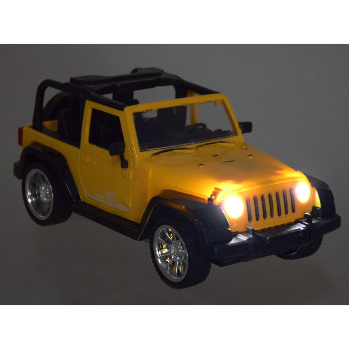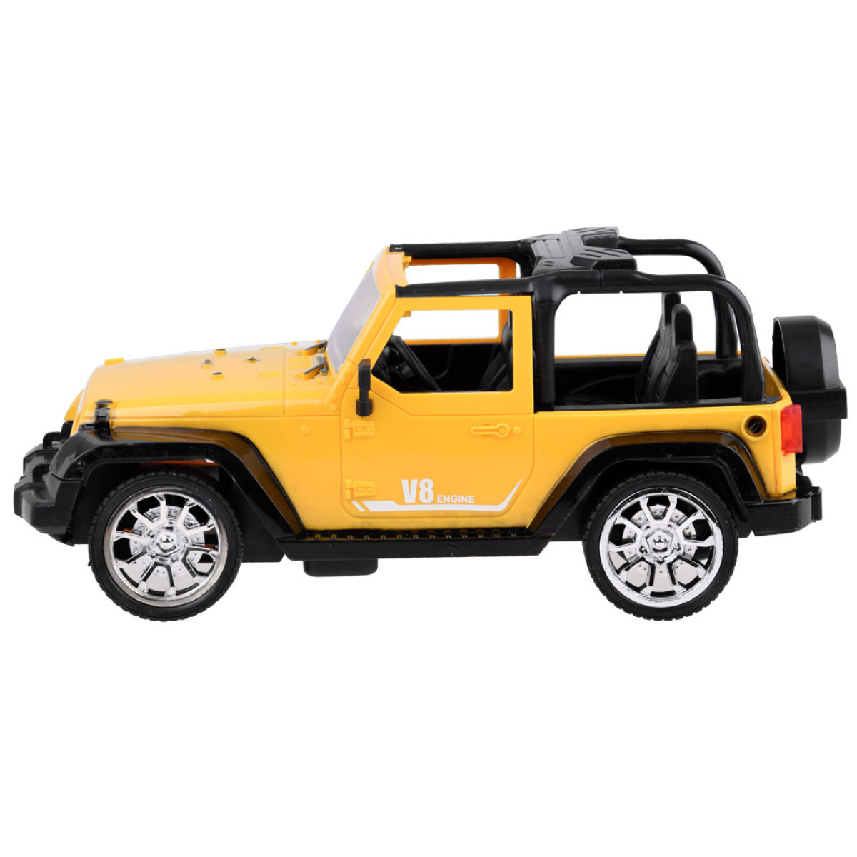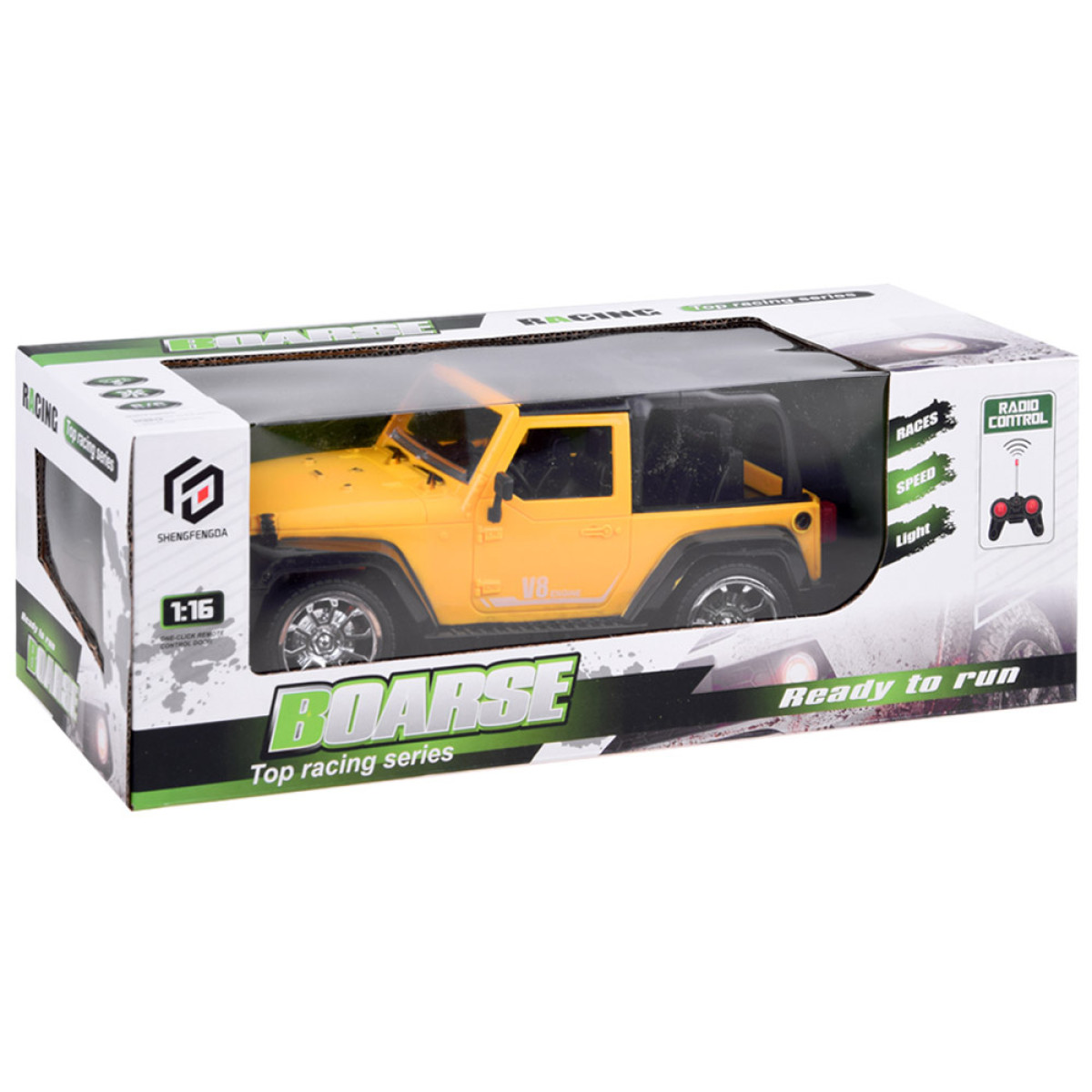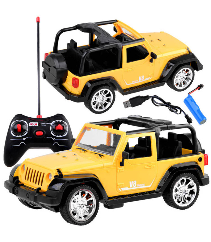 Šis visureigis automobilis su patogiu pultu suteiks daug teigiamos pramogos kiekvienam mažam vaikui. Automobilis pagamintas iš plastiko ir yra geltonai juodos spalvos, o jo ratai pagaminti iš gumos su protektoriais, todėl automobilis puikiai laikosi ant paviršiaus. Išvaizdi visureigio forma puikiai atrodys ant įvairių trasų, paruoštų mažojo vairuotojo, o šviečiančios šviesos važiuojant apšvies kelią.