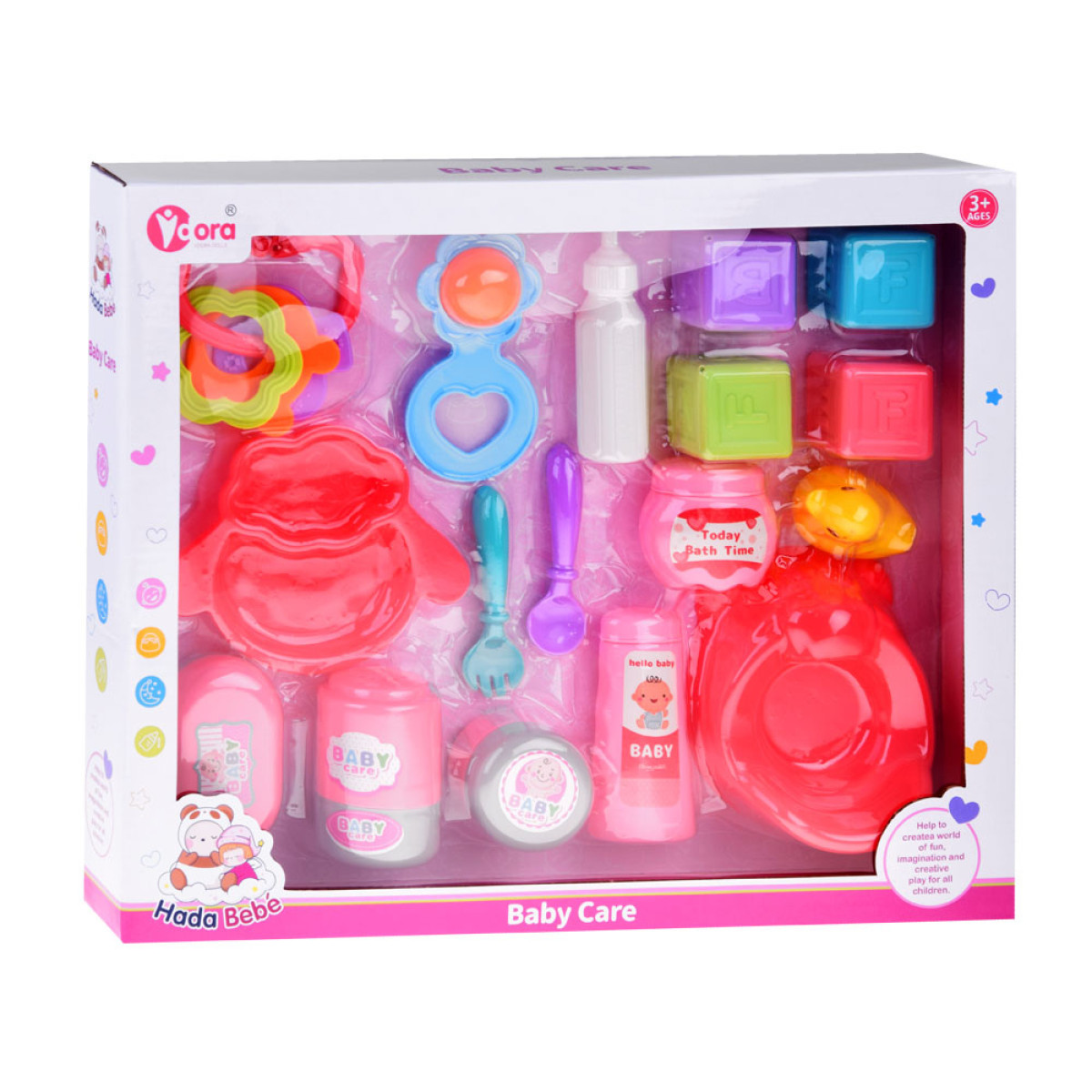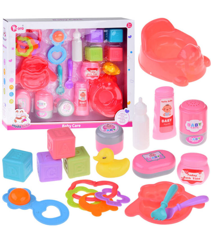 Lėlių priedai yra būtinos priemonės priežiūrai ir rūpinimuisi. Kiekviena maža mama bus sužavėta, jei jos lėlė turės naktipuodį, pudrą, kremą, šampūną, vonios skystį, buteliuką, lėkštelę su įrankiais, barškučius, kaladėles ir mažą geltoną ančiuką. Rinkinys yra malonios spalvos ir puikiai tiks kūdikių tipo lėlėms. Šis rinkinys yra būtinas kiekvienai mažai mamytei, rūpinantis lėle ar meškiuku.