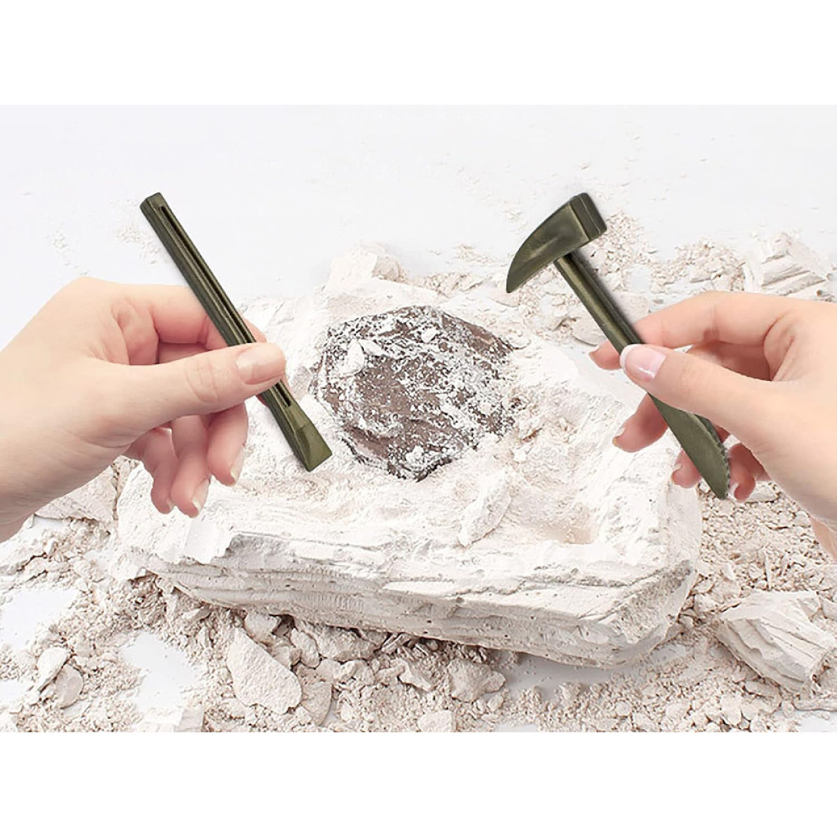 - Kasinėjimas: Dabar galite pradėti archeologo darbą! Naudodamiesi pridedamais įrankiais, švelniai skaldykite ir grandykite gipsą, palaipsniui atidengdami paslėptą modelį. Būkite kantrūs ir preciziški – turtų atradimas reikalauja dėmesio!