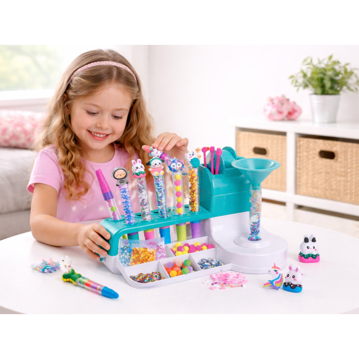 Dėl gausaus rinkinio su daugiau nei 50 priedų vaikas gali savarankiškai derinti spalvas, raštus ir dekoracijas, kurdamas rašiklius pagal savo stilių. Kūrybos procesas yra paprastas, aiškus ir įdomus, todėl veikla ilgai išlieka patraukli.