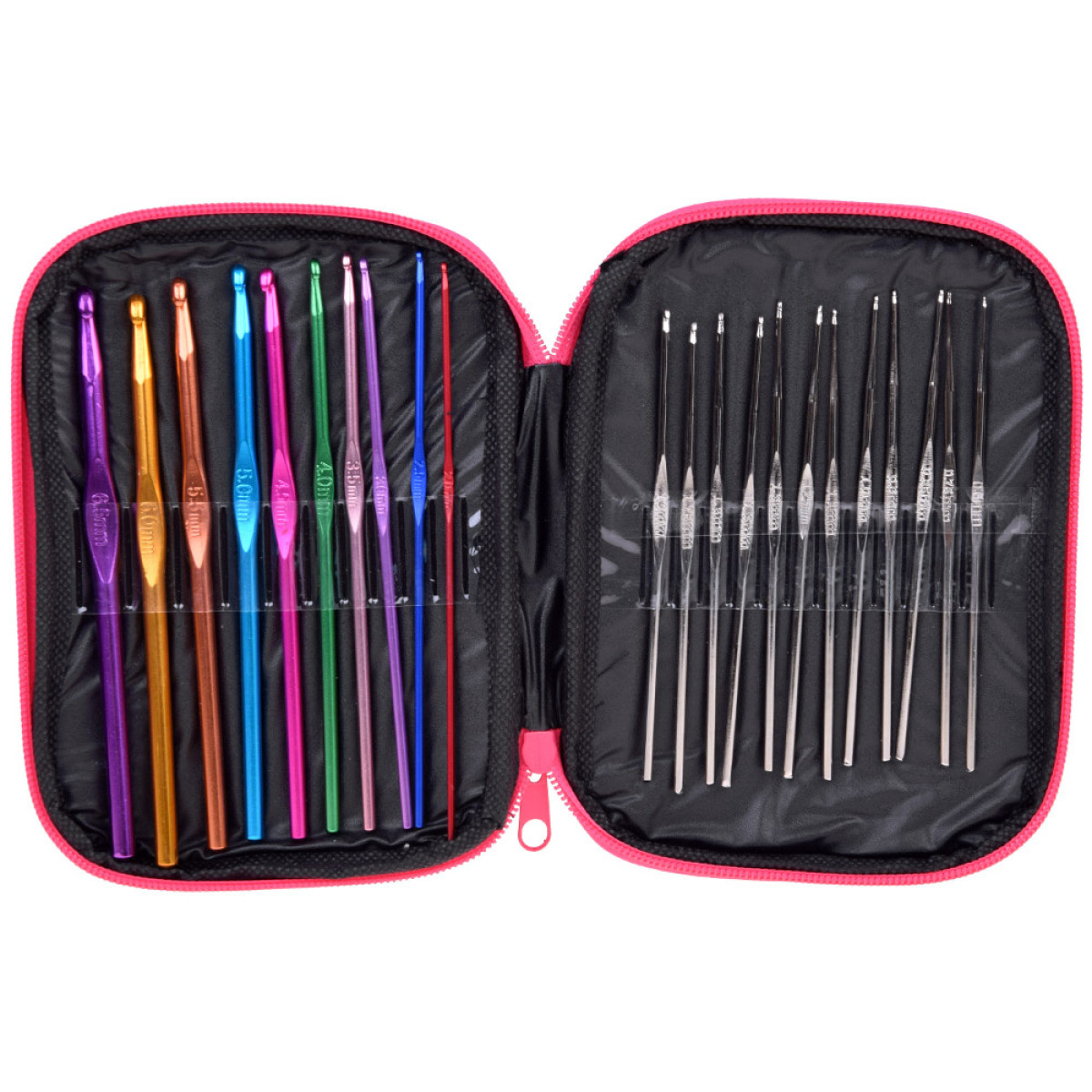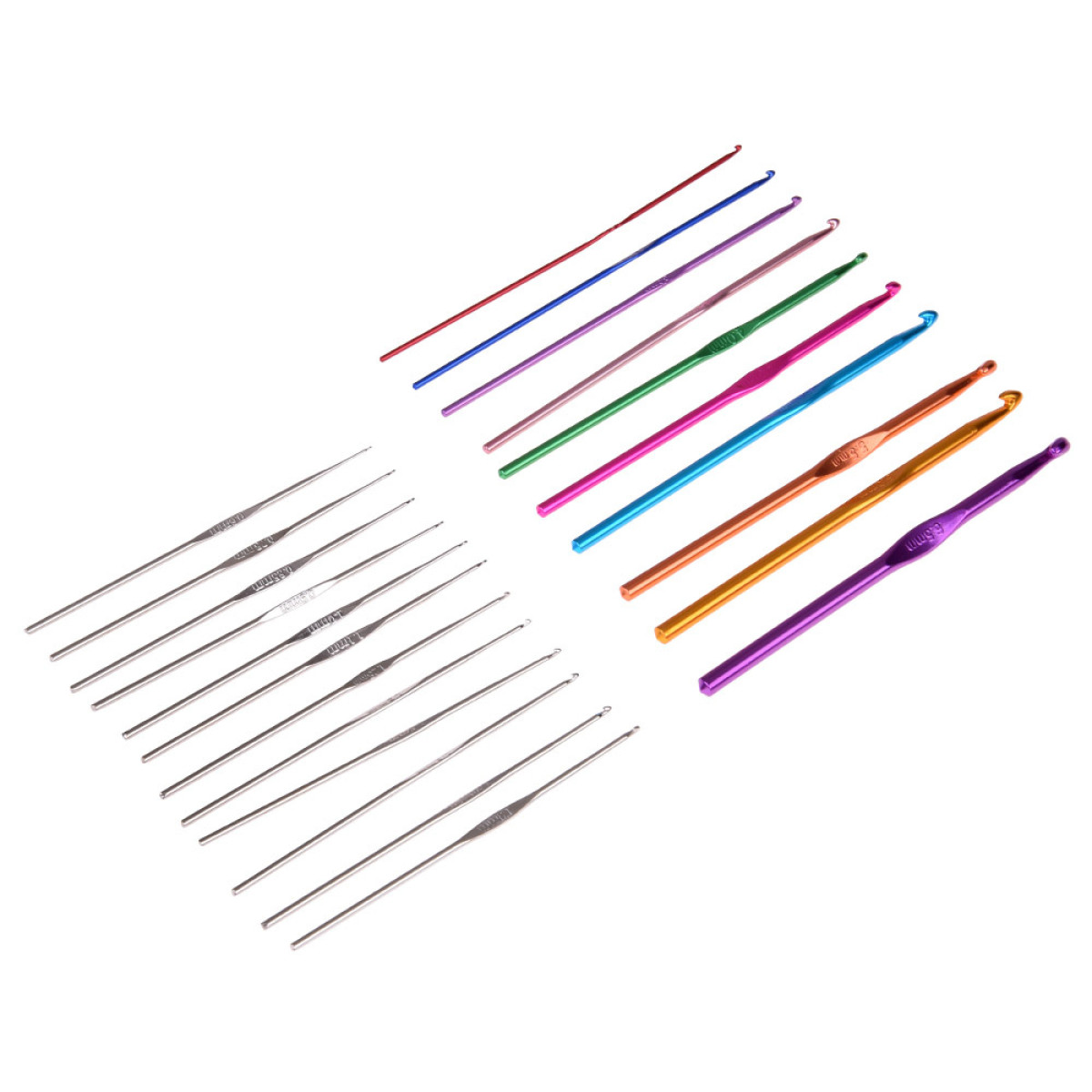 1. Platus nėrimo pasirinkimas. Rinkinyje yra net 22 nėrimo dydžiai nuo 0,6 mm iki 6,5 mm. Tai leidžia pasirinkti tinkamą nėrimo dydį pagal siūlų storį ir projektą, kurį norite sukurti. Nėrimo yra pagaminti iš metalo, todėl yra atsparūs pažeidimams ir deformacijoms. Jais galite drąsiai pasitikėti! Spalvoti nėrimo ne tik atrodo įspūdingai, bet ir turi praktinę naudą – lengvai atskirsite nėrimo dydį, nesikreipdami į dydžio žymėjimą.