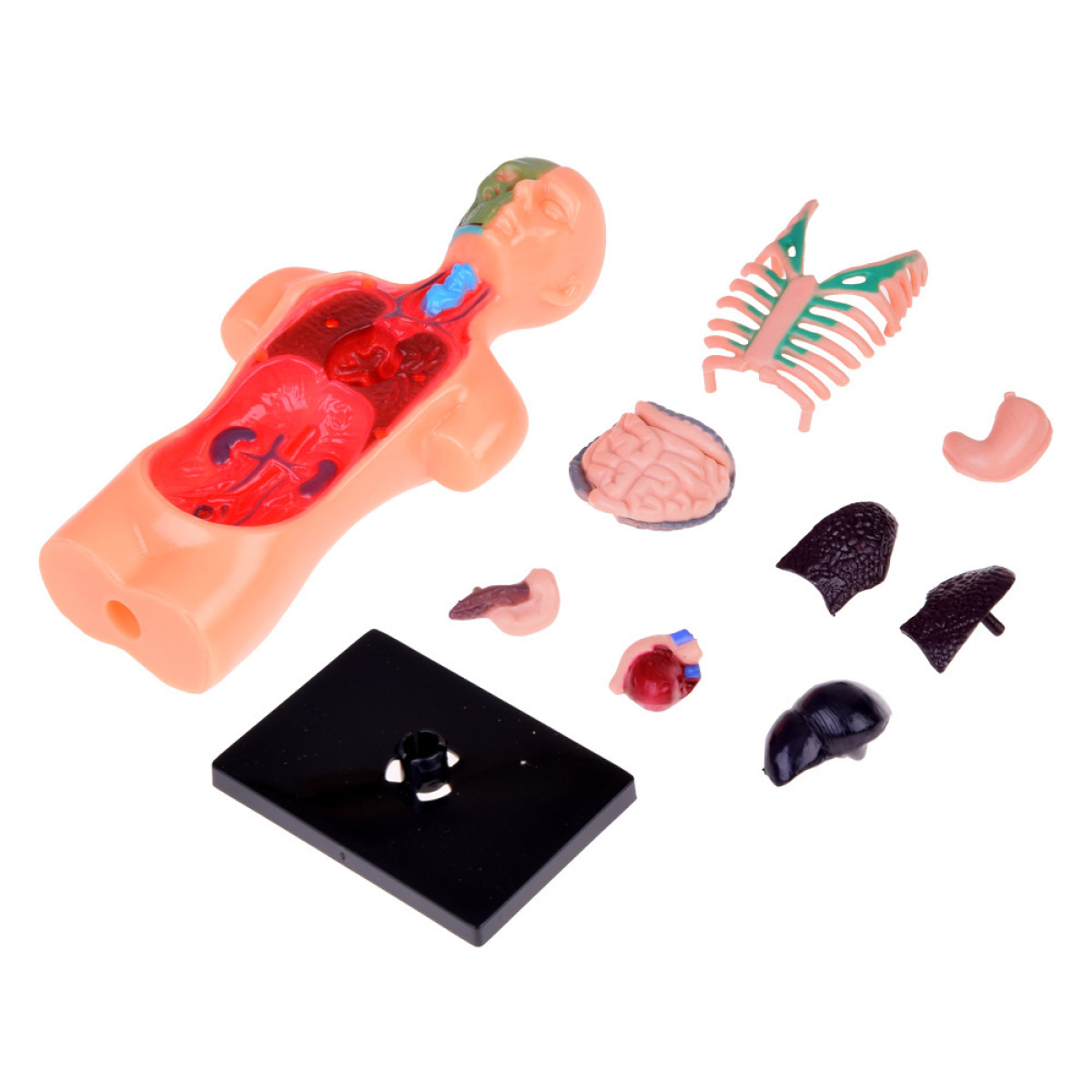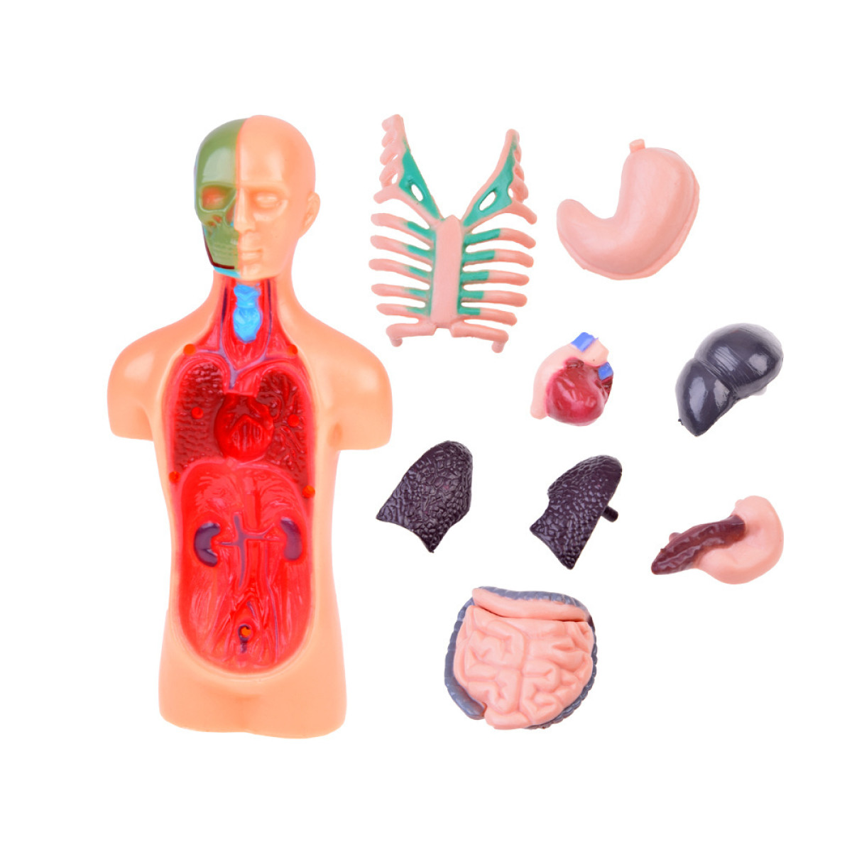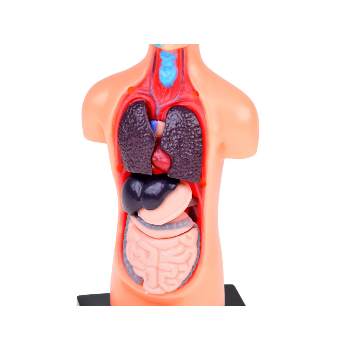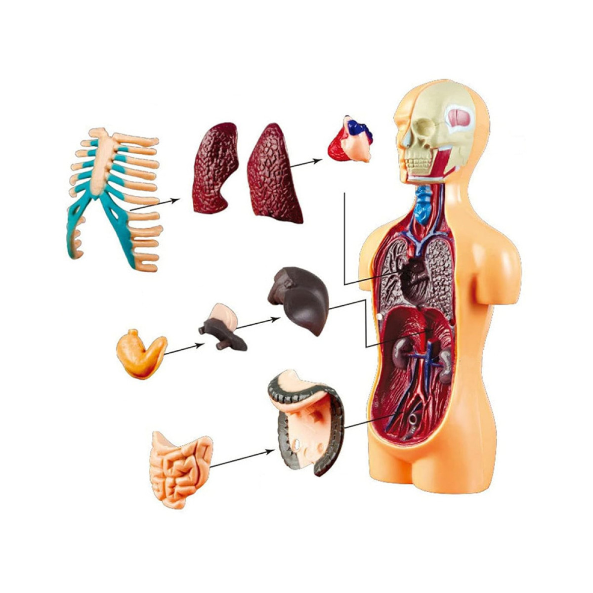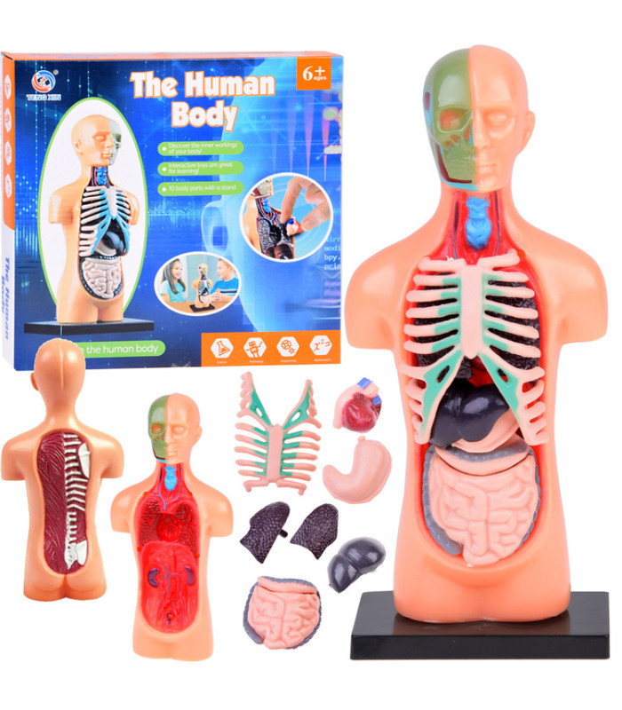 - Išimami organai – modelis turi judančius, išimamus organus, tokius kaip širdis, plaučiai, kepenys, skrandis, kasa, storasis ir plonasis žarnynas, leidžiant susipažinti su jų struktūra ir tarpusavio ryšiais. Tai palengvina mokymąsi ir organų funkcijų supratimą kūno sistemoje.
