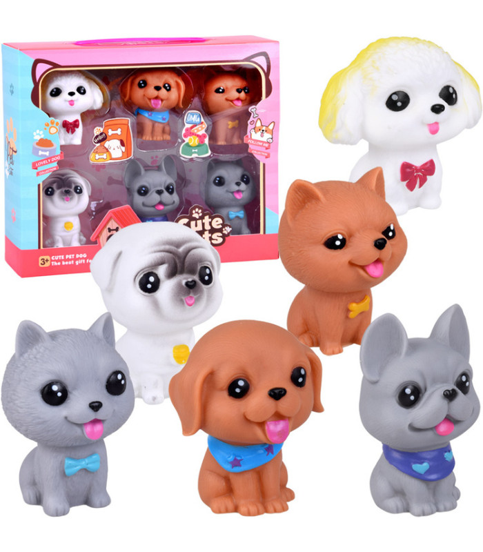 guminių šuniukų figūrėlių rinkinys, 6 vnt.