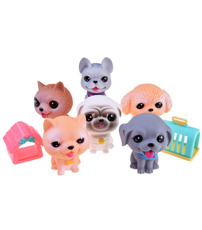 Nuostabus guminis figūrėlių šuniukų rinkinys yra puikus pasirinkimas kiekvienam šių mielų keturkojų gerbėjui. Figūrėlės šuniukai bus puikus papildymas kiekvienai vaiko kolekcijai arba gali tapti naujos aistros pradžia. Jie puikiai tiks žaidimams su šunų grožio salonu, šunų viešbučiu, šuniukų mokykla arba kaip dovana mažyliui, kuris dėl įvairių priežasčių negali turėti savo šuniuko. Minkštos guminės figūrėlės šuniukai pagamintos kruopščiai ir su dėmesiu detalėms. Jų mieli snukučiai ir didelės akys sužavi iš pirmo žvilgsnio. Paspaudus jos skleidžia juokingą cypsėjimą, panašų į tikrus šuniukus. Kiekviena figūrėlė turi skylutę apačioje.