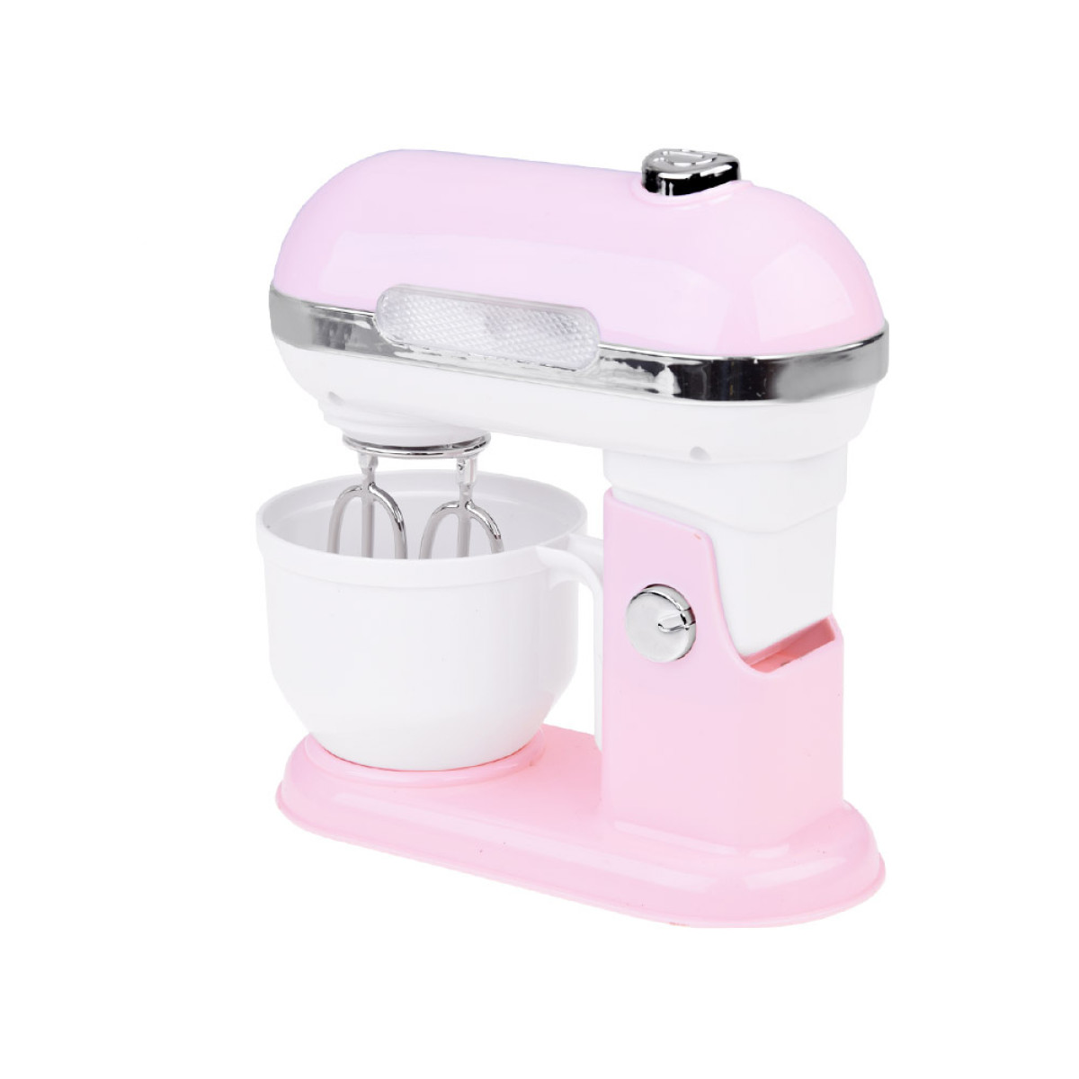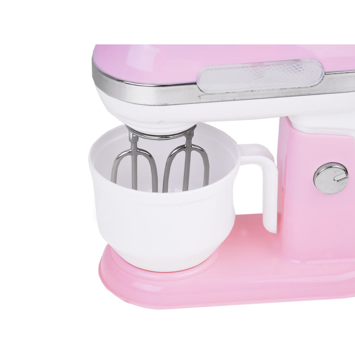 Planetarinis mikseris su talpia dubeniu įjungiamas mygtuku ON/OFF. Įjungus, antgaliai pradeda suktis kaip tikrame mikserio! Veikiant mikseriui, dega raudona lemputė. Kad būtų lengviau išimti dubenį, mikserio rankena yra atlenkiama. Žaislas maitinamas baterijomis 2 x AAA (nėra rinkinyje).
