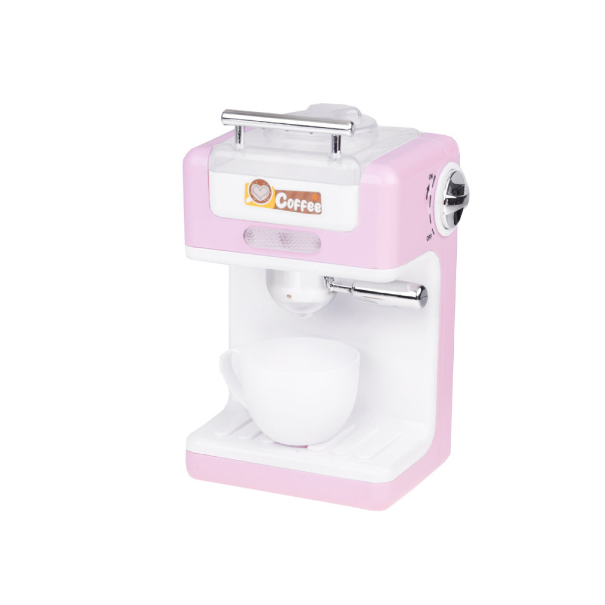 Elegantiškas kavos aparatas įjungiamas ratuku. Pasukus ratuką, girdimas veikimo garsas, o priekyje esanti švieselė užsidega raudonai. Aparatas turi sukiojamą kolbą ir patogų skyrelį papildams. Rinkinyje taip pat yra plastikinė balta puodelė. Maitinimas: baterijos 2 x AAA (nėra rinkinyje).