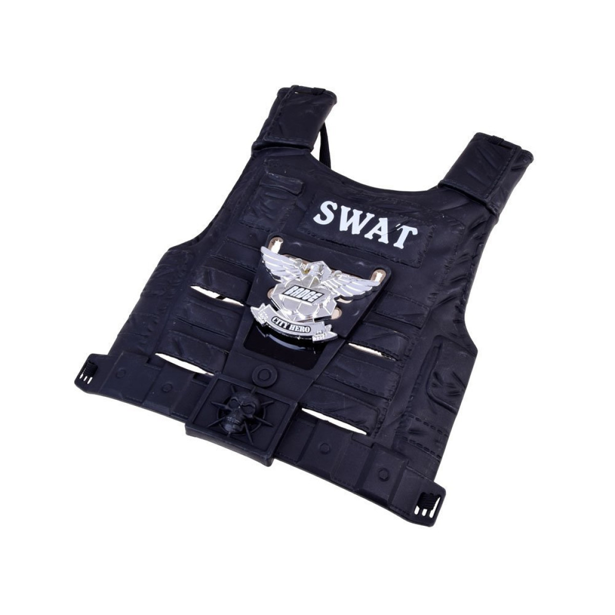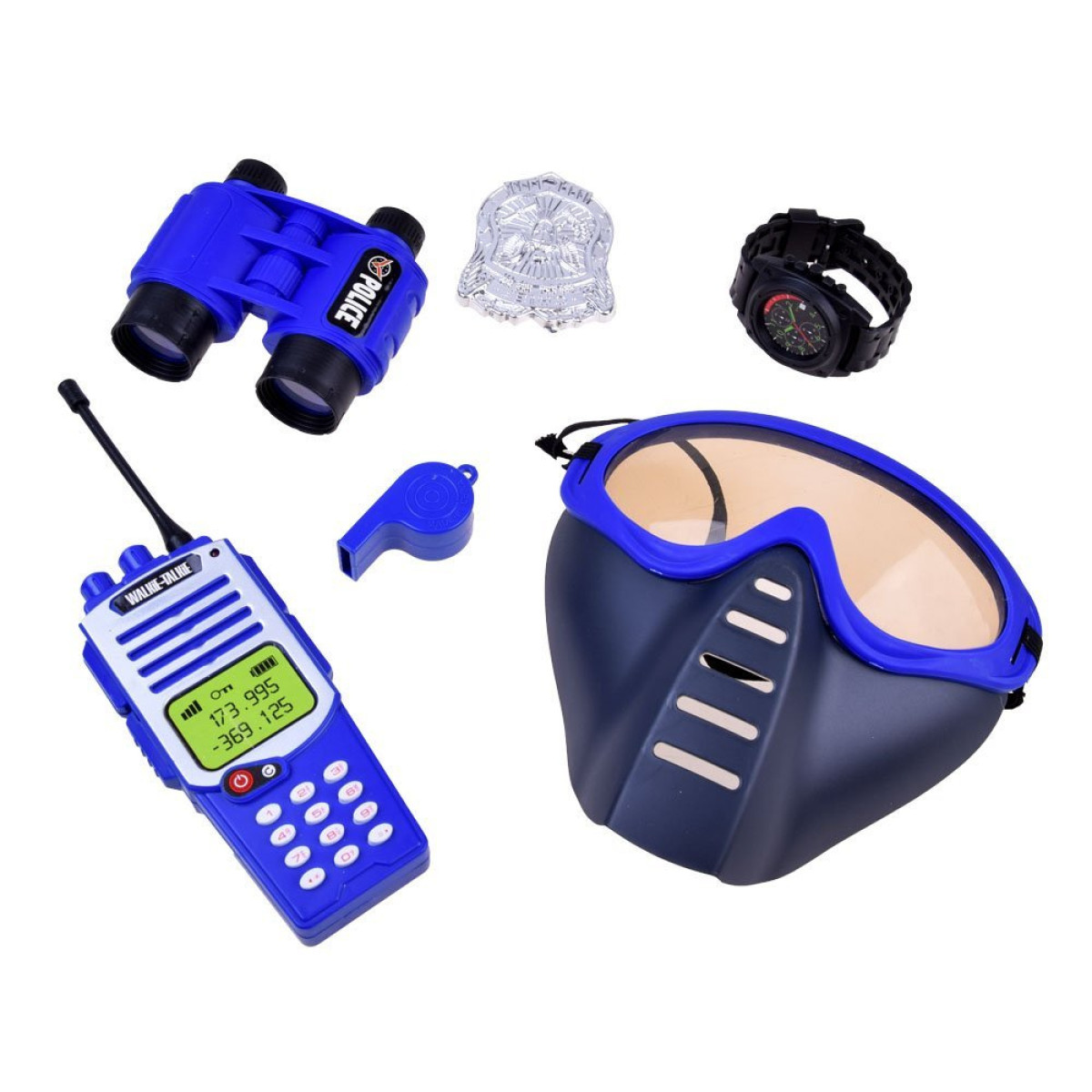 Tamsiai mėlyna liemenė, ginklas ir apsauginė kaukė puikiai tiks žaidžiant teisėsaugos atstovą.