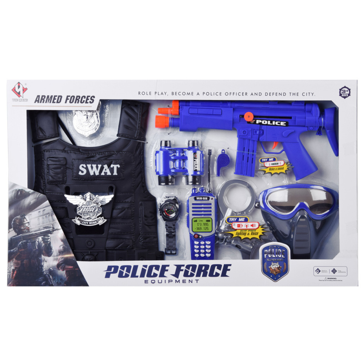 Policininko rinkinys yra plastikinis komplektas berniukams, norintiems įsijausti į policininko vaidmenį. Šis rinkinys atitiks kiekvieno jauno policininko lūkesčius.