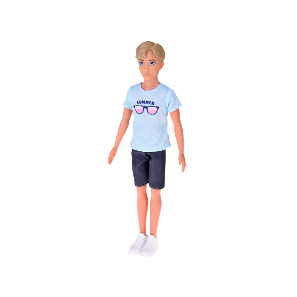 Lėlė Tėvas yra mėlynakis blondinas, apsirengęs vasariško stiliaus drabužiais: mėlyna marškinėliai, trumpi šortai ir balti sportiniai batai.