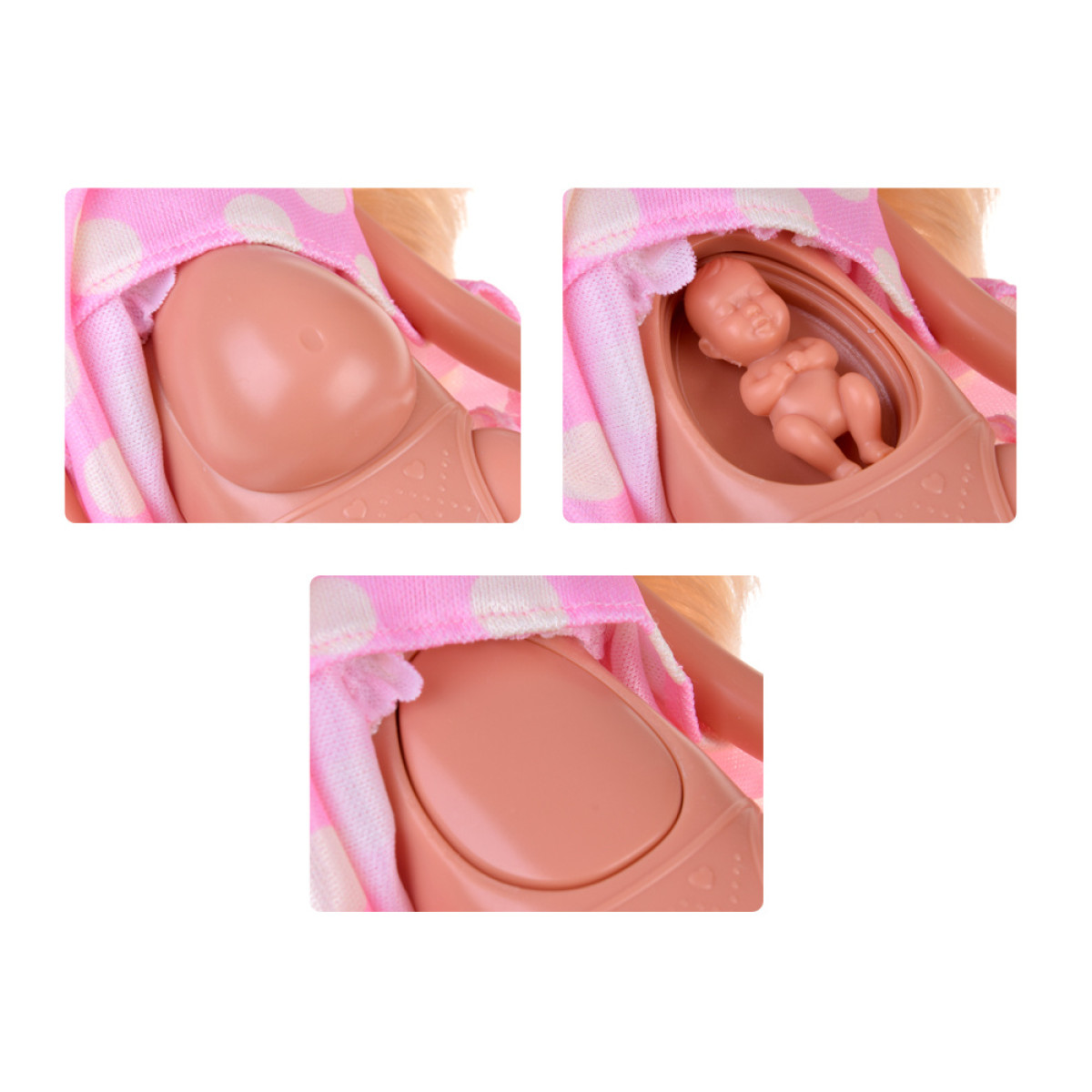 Motinos lėlės specialus atidaromas pilvas leidžia išimti mažylį – puikus būdas žaidžiant parodyti, kaip šeima gauna naują narį. Abi lėlės turi judančias galūnes.