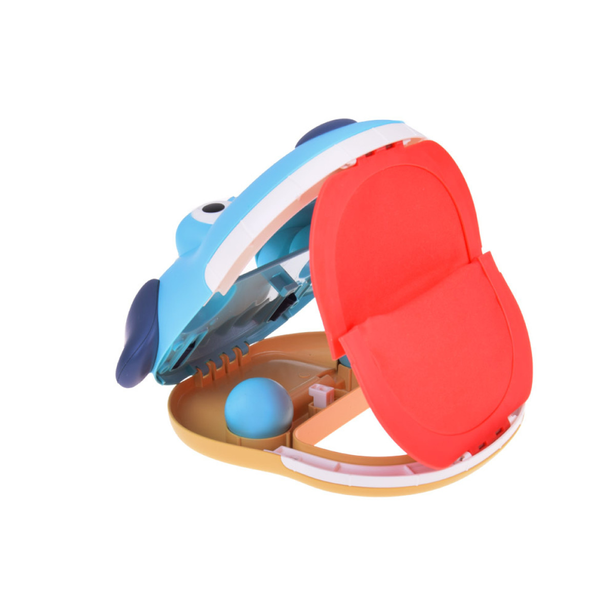 4. Kiekvienoje gaudyklėje yra dvi kamuoliukai (iš viso keturios rinkinyje). Padėkite vieną kamuoliuką gyvūno burnoje, ant jo "liežuvio".