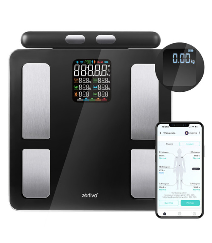 Modernios analitinės vonios svarstyklės ZORTIVA Smart yra išmanus kasdienės sveikatos ir kūno stebėsenos įrankis, atitinkantis PSO rekomendacijas . Dėl 8 tikslių elektrodų Kūno sudėties analizė, KMI matavimas ir sinchronizavimas su „iMoni“ mobiliąja programėle suteikia jums realaus laiko vaizdą apie jūsų pažangą . Elegantiškas, aukščiausios kokybės stiklinis dizainas ir didelis matavimo tikslumas daro jį idealiu pasirinkimu sveikata besirūpinantiems asmenims.