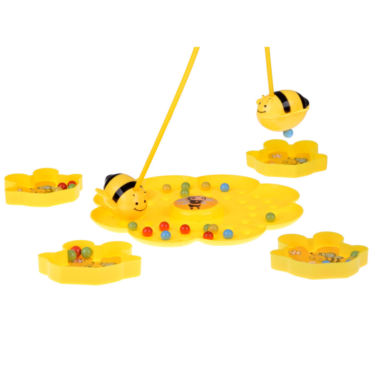 žaidimo pagrindą galima papuošti rinkinyje esančiais lipdukais. ant gėlės formos pagrindo suberiami kamuoliukai. kiekvienas žaidėjas gauna savo indelį, į kurį rinks magnetinius kamuoliukus. kai viskas paruošta, pagal sutartą signalą visi pradeda gaudyti kamuoliukus magnetinėmis bitutėmis.